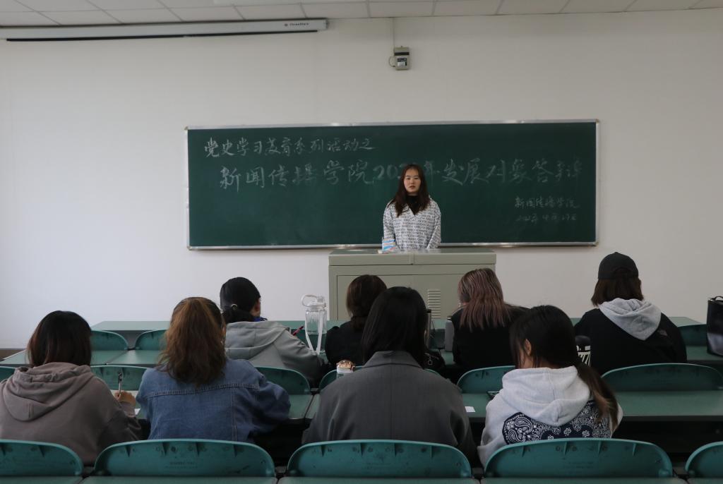 发展对象从个人情况、入党动机、取得的突出成绩及自身的缺点与不足等方面进行陈述。学生党支部评议小组就时事政治、党的理论知识等方面进行现场提问,对发展对象进行综合的考核,全面地了解发展对象在思想、学习、生活和工作中的综合表现。