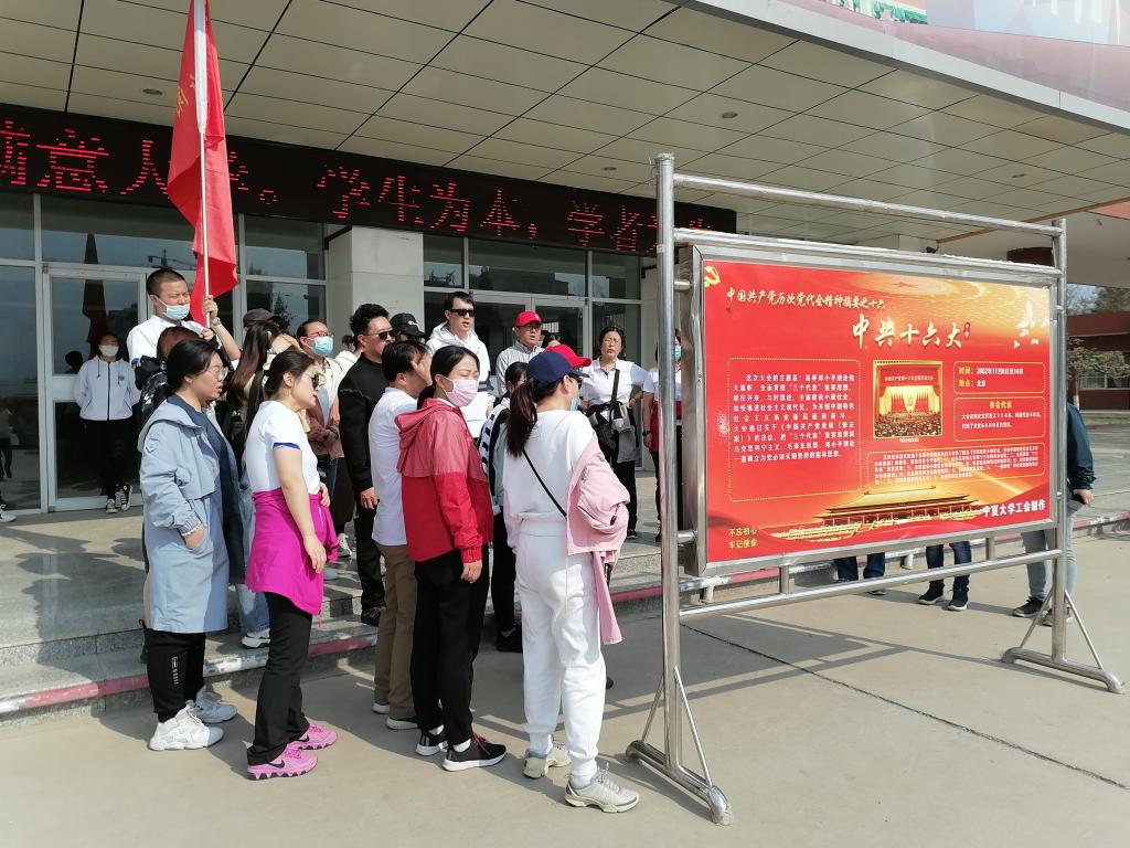 比赛以怀远校区环金波湖健身步道为主赛道,辐射周边田径场、图书馆等校园经典赛场,大家前往19个打卡集结点寻找背景板,朗读背景板上中国共产党人典型的精神谱系,集体学习背景板上党代会的核心内容。