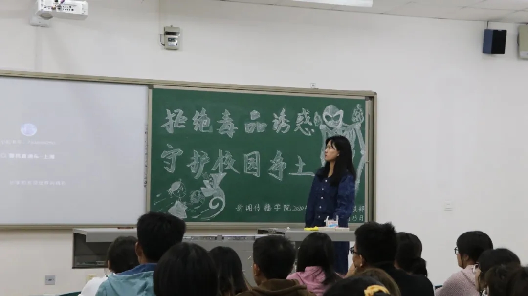 活动中,各班团支书通过播放禁毒宣传片,放映幻灯片等形式,向同学们详细介绍了毒品的性质及其演变,并列举具体鲜明的吸毒事例,从个人、家庭、社会三个方面点明吸毒的危害。同时针对毒品的发展,提醒大家要注意极具隐蔽性的新型毒品。在提问互动中,同学们积极参与,踊跃发言,相互交流自己对毒品的认识,进一步理解禁毒的意义,明晰个人禁毒防范工作的责任。