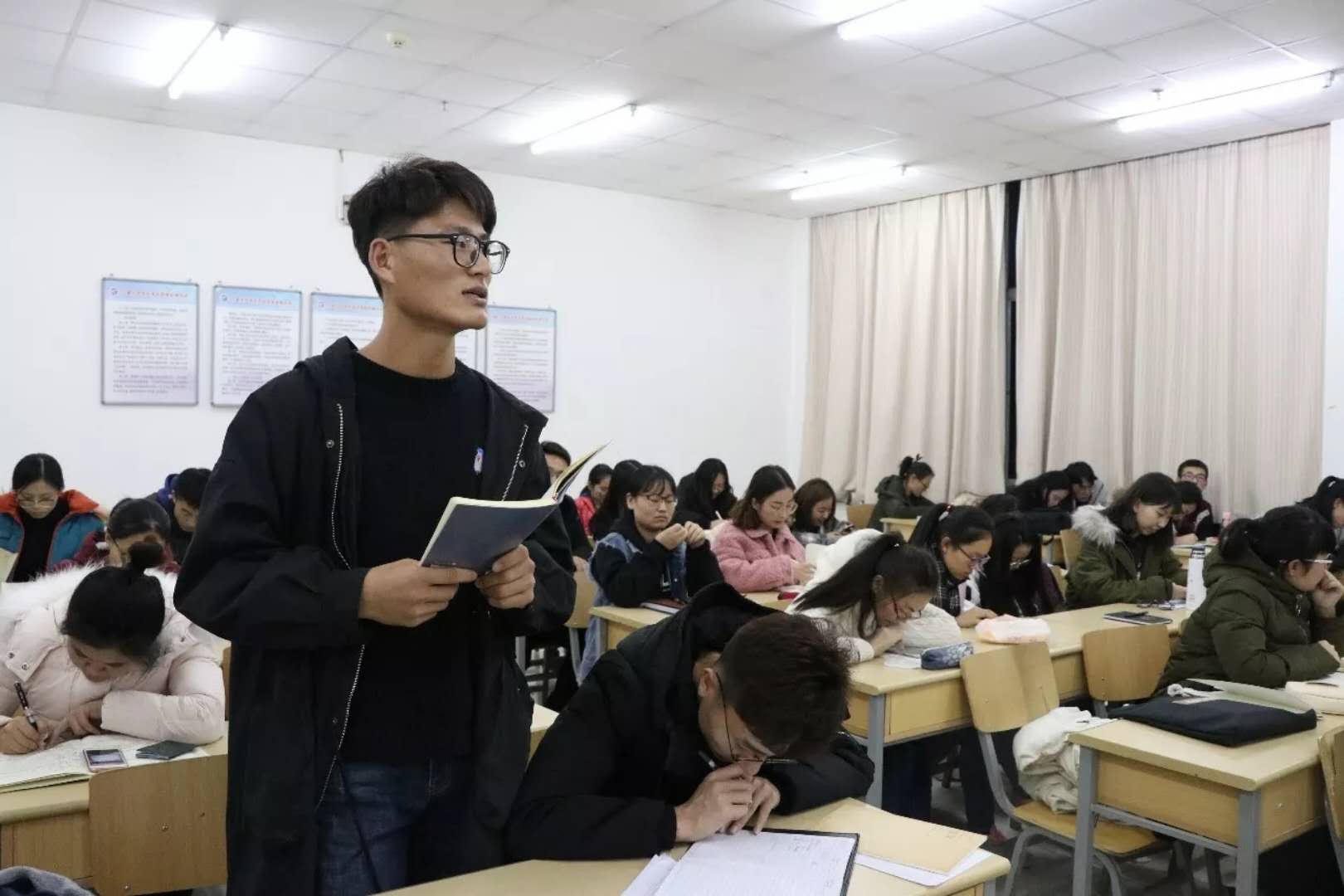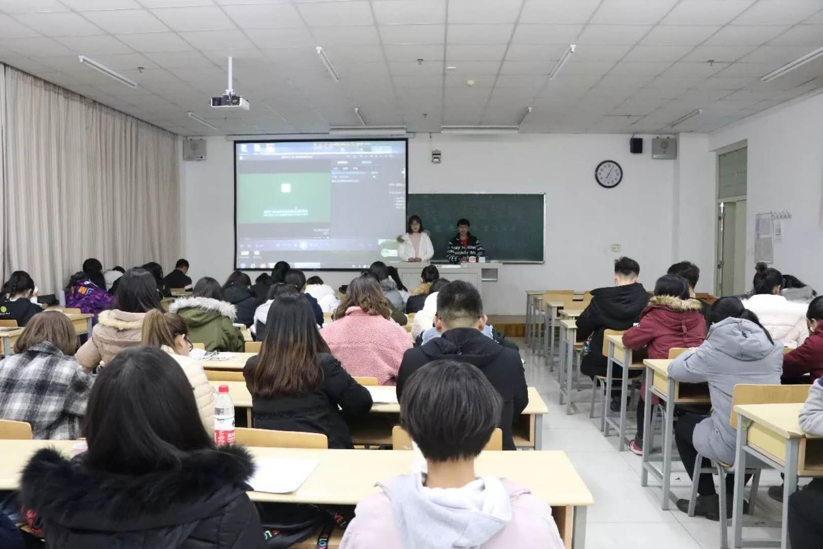 12月4日晚上,我院全体入党积极分子和发展对象在文荟楼408教室通过观看影片《高考1977》和《榜样》进行党课自主学习活动。