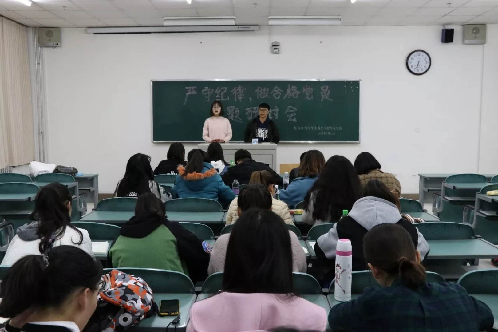 第三期党员发展对象和第四期入党积极分子分别在文荟楼408、320开展了以“严守纪律,做合格党员”为主题的专题研讨会,会议分别由团委副书记杨婧和组织部王佑凯、王梦妮主持。