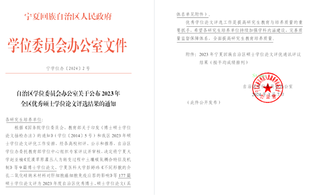 这是我院硕士学位点自2019年招生以来首次获评自治区级、校级优秀硕士学位论文,这一成就不仅是对获奖学生和导师的肯定,更是我院长期以来注重研究生培养质量、鼓励学术创新的体现。我院一直重视研究生学位论文质量,严格抓好论文开题、中期检查、预答辩三大环节,充分利用教育部学位中心论文质量监测平台,实施学位论文双盲评阅全覆盖。