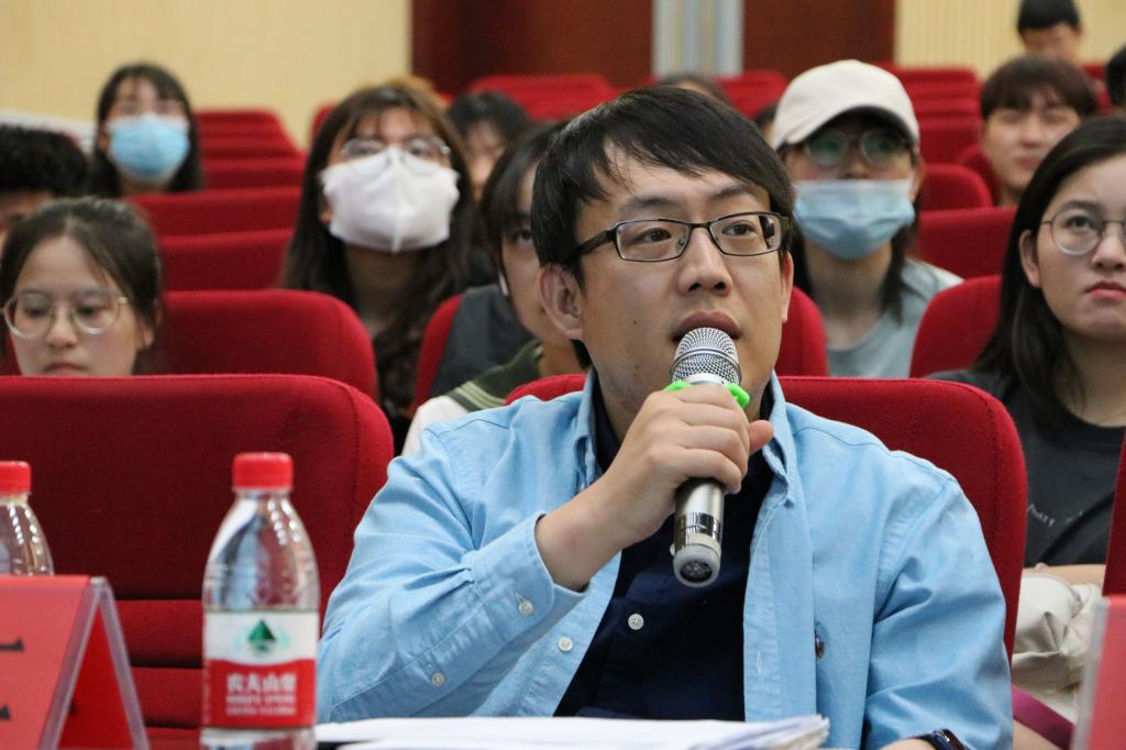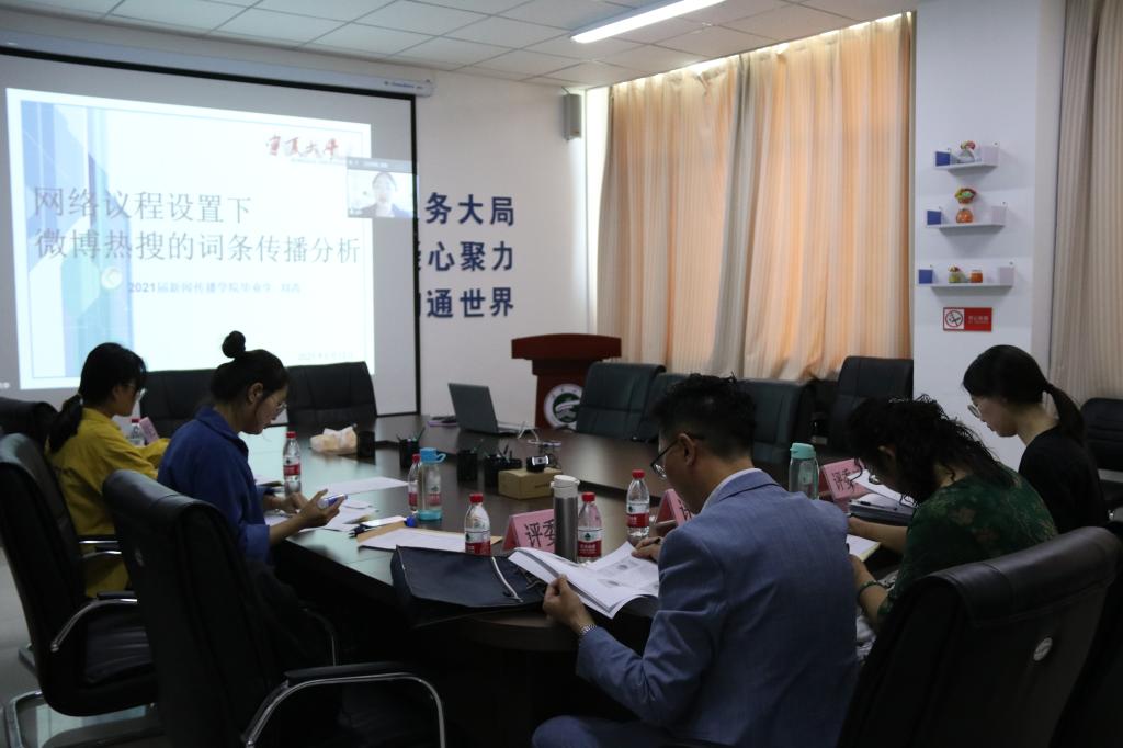 部分本科生参加并聆听答辩会。答辩同学选题新颖,角度不一,形式多样。张彤彤同学聚焦新冠疫情,结合时事,通过撰写论文探究疫情背后蕴含的专业内容。谢瑞同学通过单线描述个人成长轨迹,融入家乡地理人文和自己军旅历程,探索当代青年成长过程中的自我建构和梦想实践,最终完成了非虚构写作《四分之一的人生》。王瑞刚同学则通过镜头聚焦社会变迁,用影像记录时代,以毕业设计的形式为自己大学生活画圆满句号。王科桥同学别出心裁将自编自导的记录视频融入论文《数字空巢》,深究数字媒体快速发展时代下高龄老人面临的困境,引发老师和同学们深思。谢明辉评论:“形式大胆,布局架构恰当,视频的拍摄和剪辑体现了专业技巧,但是背景音乐过多过重。”
