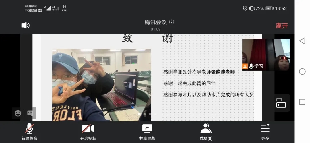 毕业生分为六个小组和一个大组,采取“线下为主,线上为辅”的形式进行答辩,并依托腾讯会议对答辩现场进行实况直播。