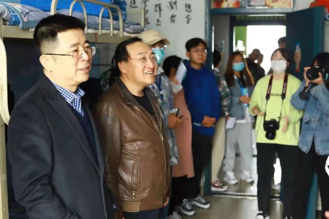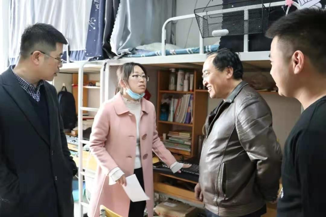 领导深入宿舍,就大家的返校表示热烈欢迎,随后对宿舍卫生进行检查,并根据学生到校后的生活和学习提出相应建议。周强书记与李世举院长格外关注学生的饮水健康、宿舍卫生和疫情防控等方面的问题。
