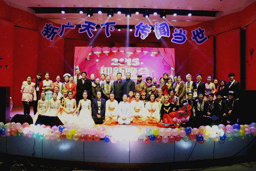 2015年“新广天下 传闻当世”迎新晚会暨学生工作表彰大会在A区音乐厅举行。校党委副书记赵利宁与银河国际