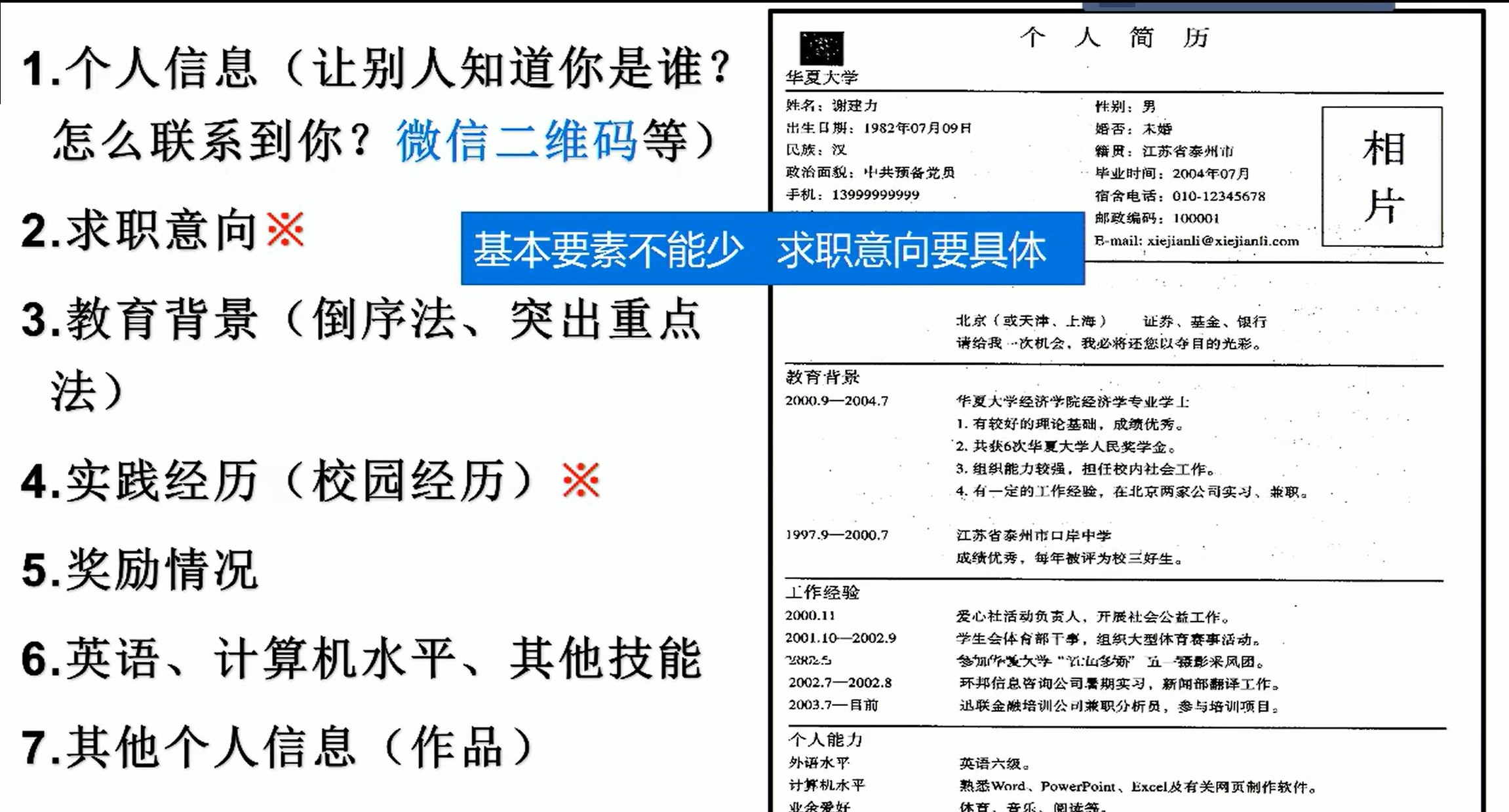 此次讲座,余洁老师围绕简历基本要素、挖掘能力优势、如何根据岗位需求打造专属简历这三个方面为同学们详细阐述了如何撰写自己的专属简历。她从简历的基本要素入手,详解介绍了个人简历中的各项信息及填写要求。“个人简历是求职中的一面镜子,你的简历是什么样,你便是什么样。”她叮嘱同学们在注重简历内容设计的同时也要提升版面设计水平,从细节方面进一步丰富自己的简历。