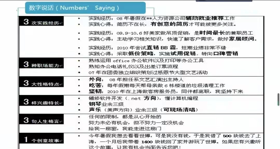 最后余洁为同学们推荐了“3+1+3”撰写简历的方法,强调在简历中要量化指标和数字,要清晰地展示出自己的具体的能力,结合应聘岗位的具体需求撰写自己的相关能力,余洁说到并没有所谓的万能简历,简历中要提供用人单位所需要的信息,根据用人单位需求撰写自己的简历,才能吸引招聘者的目光,获得就业机会。