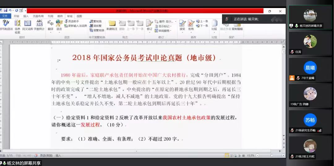 副教授杨文林于腾讯会议作主题为“申论考试技巧与实例分析”的专题辅导讲座,银河国际