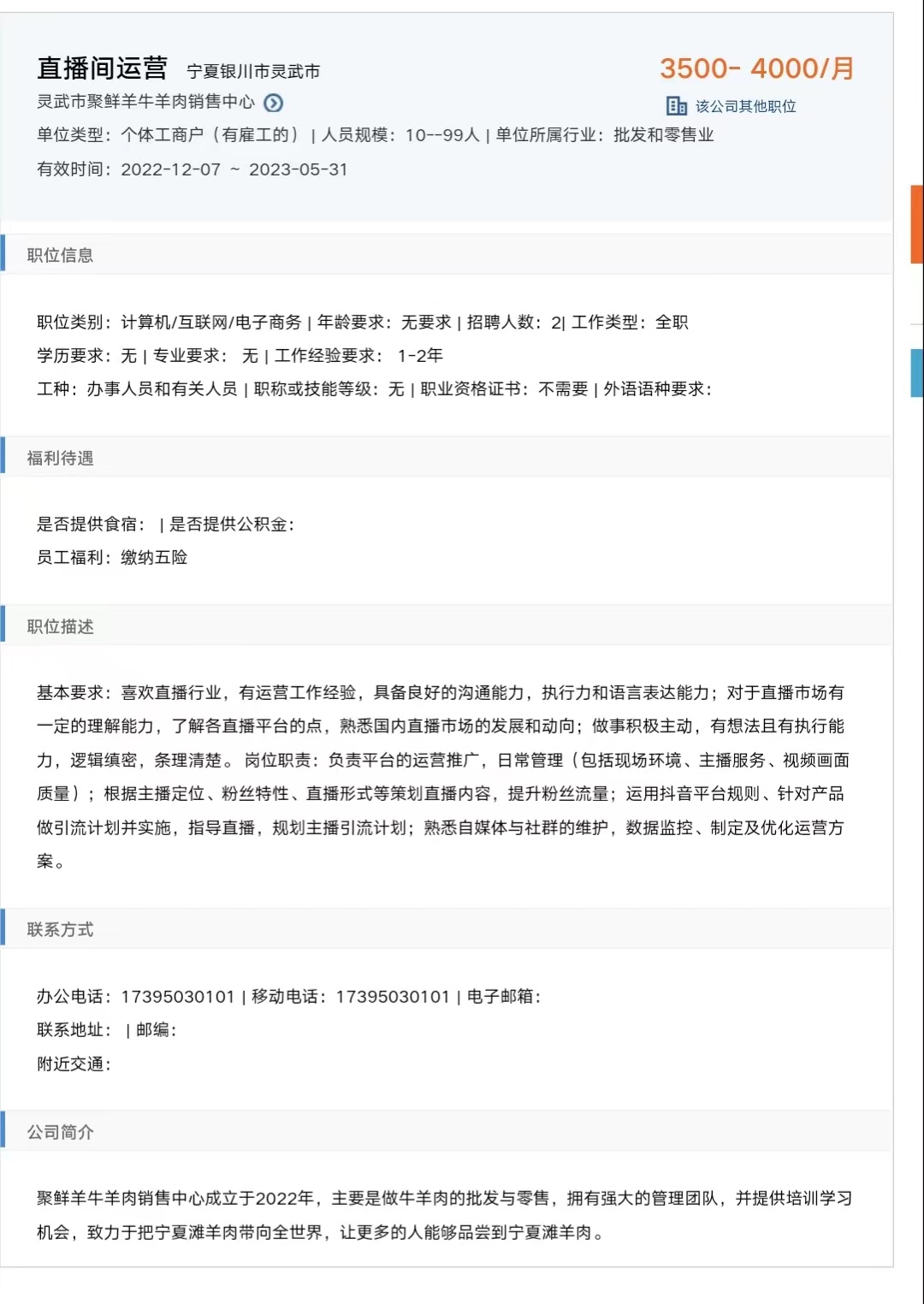 3.公司:宁夏灵武市聚鲜羊牛羊肉销售中心