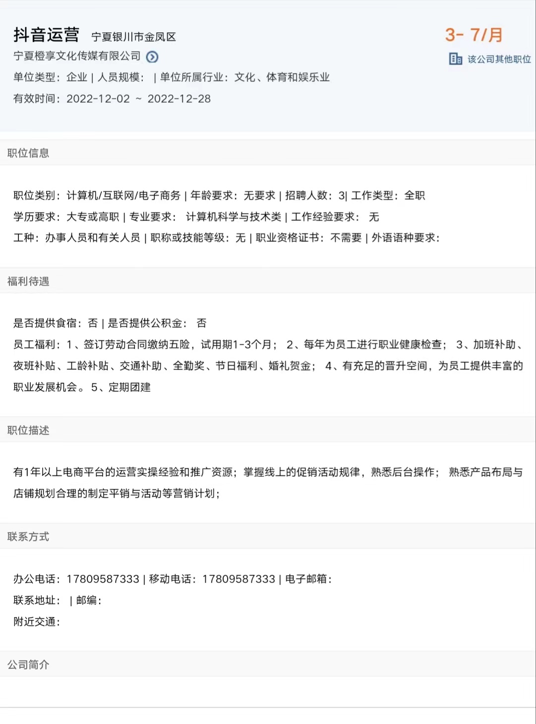 岗位:抖音运营