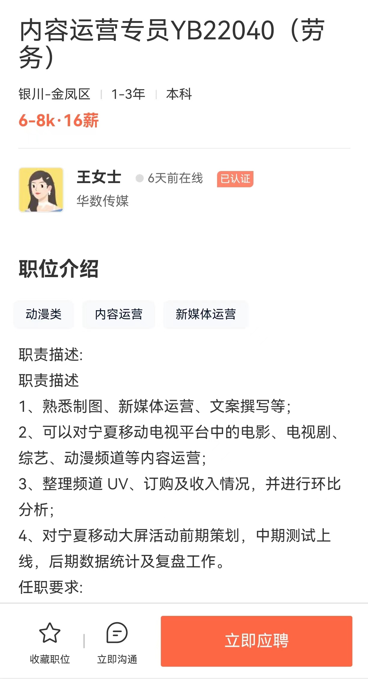 1、岗位:内容运营专员