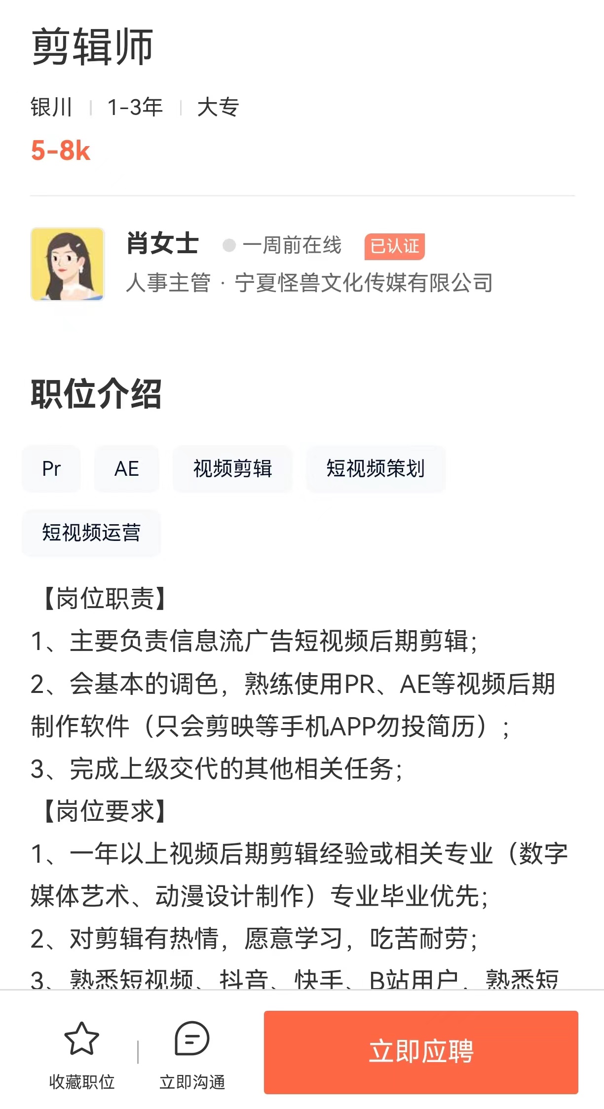2、岗位:剪辑师