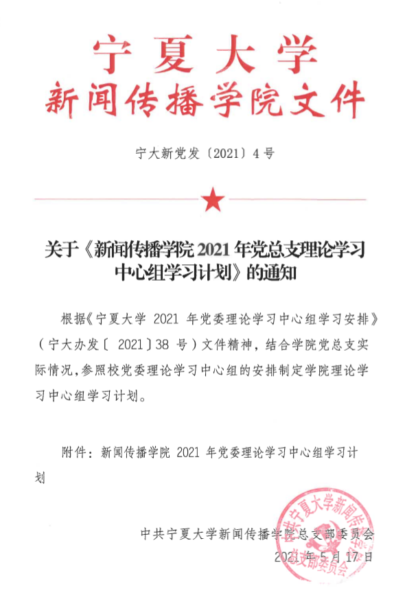关于《银河国际 2021年党总支理论学习中心组学习计划》的通知