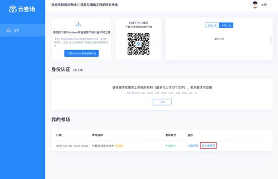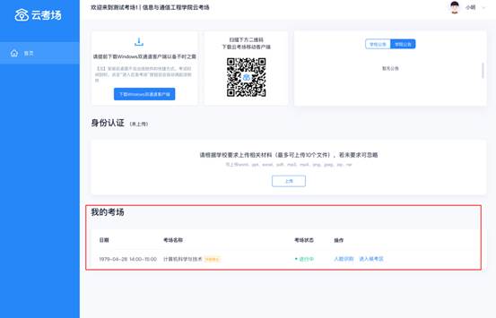 查看考场的日期时间、考场名称等信息,若有疑问及时跟学校管理员取得联系
