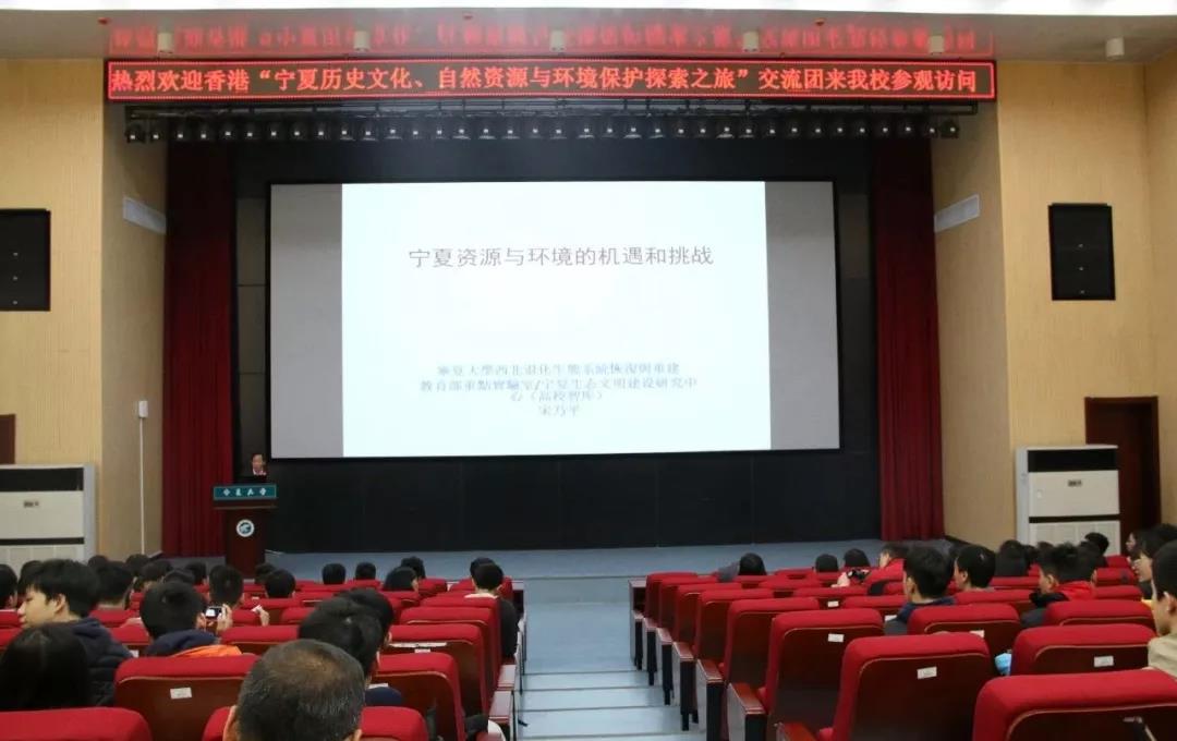 11月14日上午,“宁夏历史文化、自然资源与环境保护探索之旅”香港交流团到我校参观访问。银河国际 西部退化生态系统恢复与重建教育部重点实验室主任宋乃平教授于科技楼一楼报告厅为交流团和我校师生开展题为《宁夏资源与环境的机遇和挑战》的讲座。我院部分2018级新生参加了此次交流研讨。