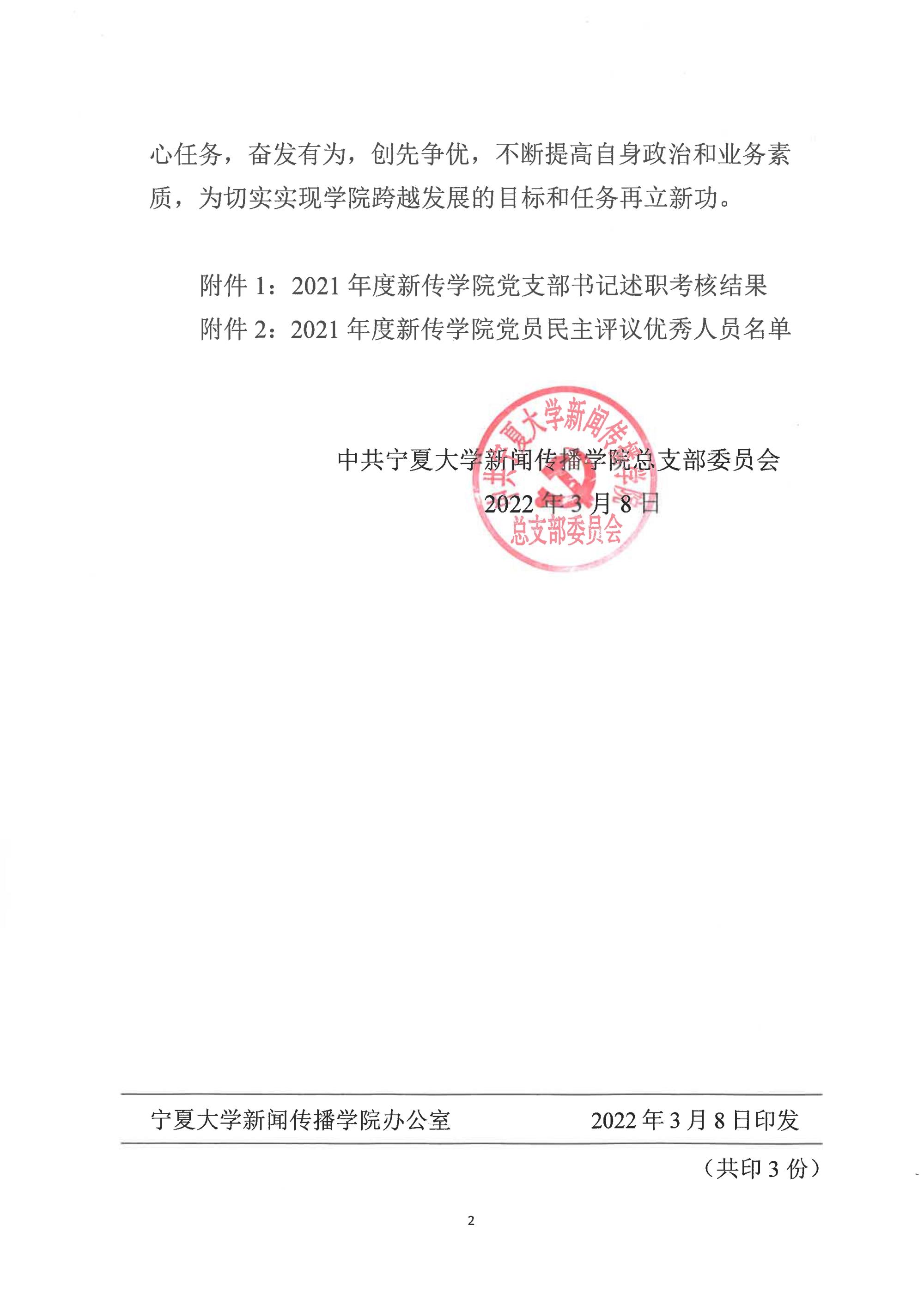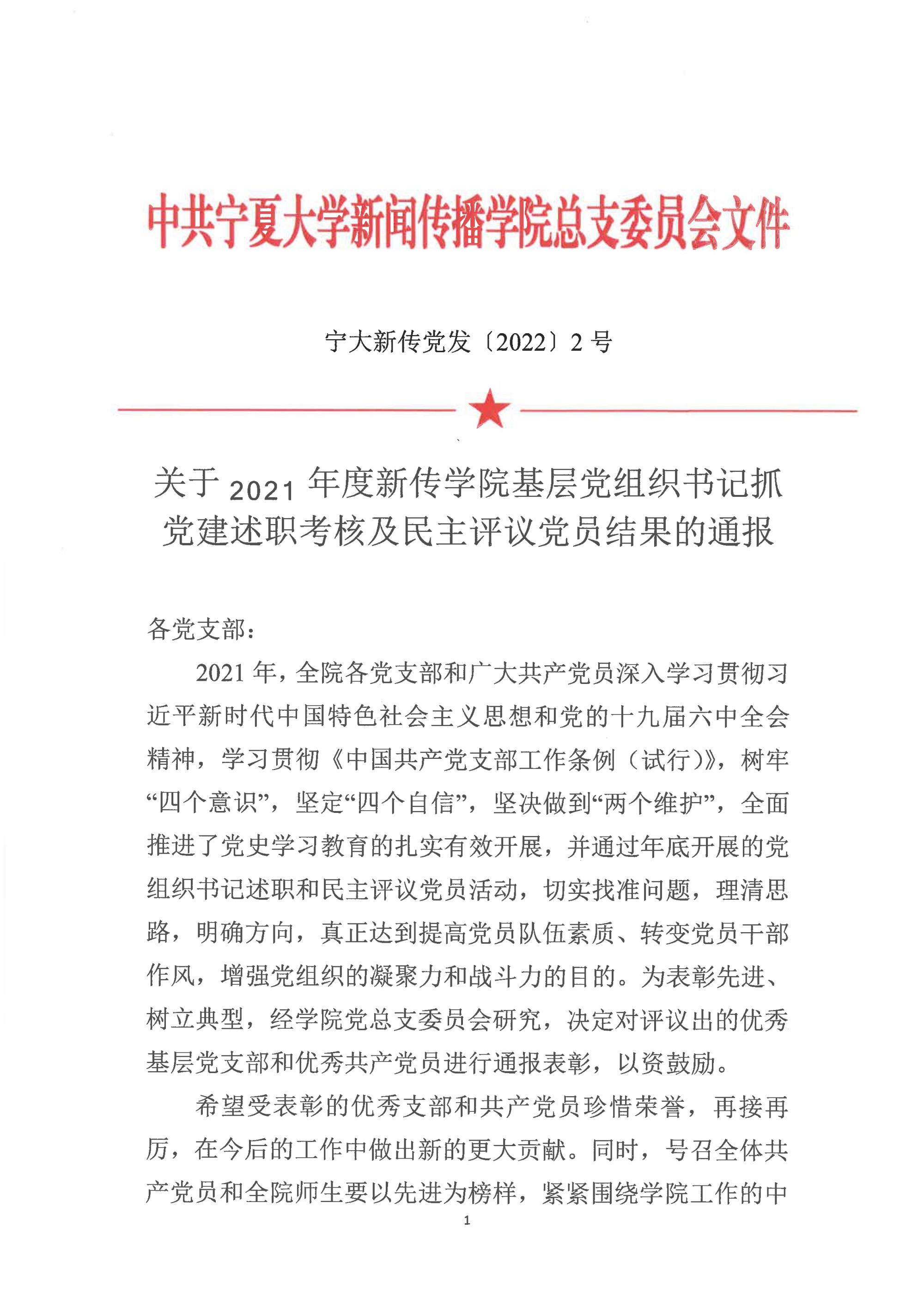 宁大新传党发〔2022〕2号 关于2021年度新传银河国际 基层党组织书记抓党建述职考核及民主评议党员结果的通报