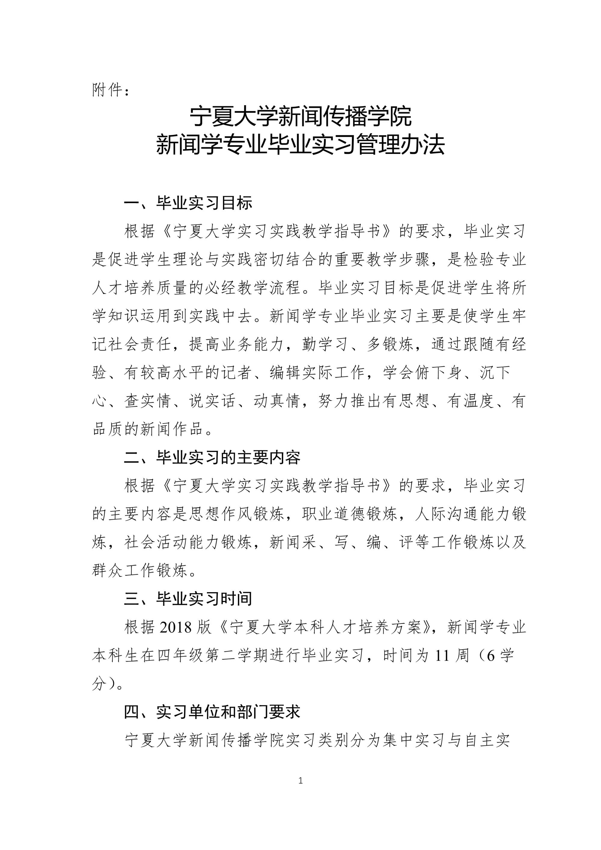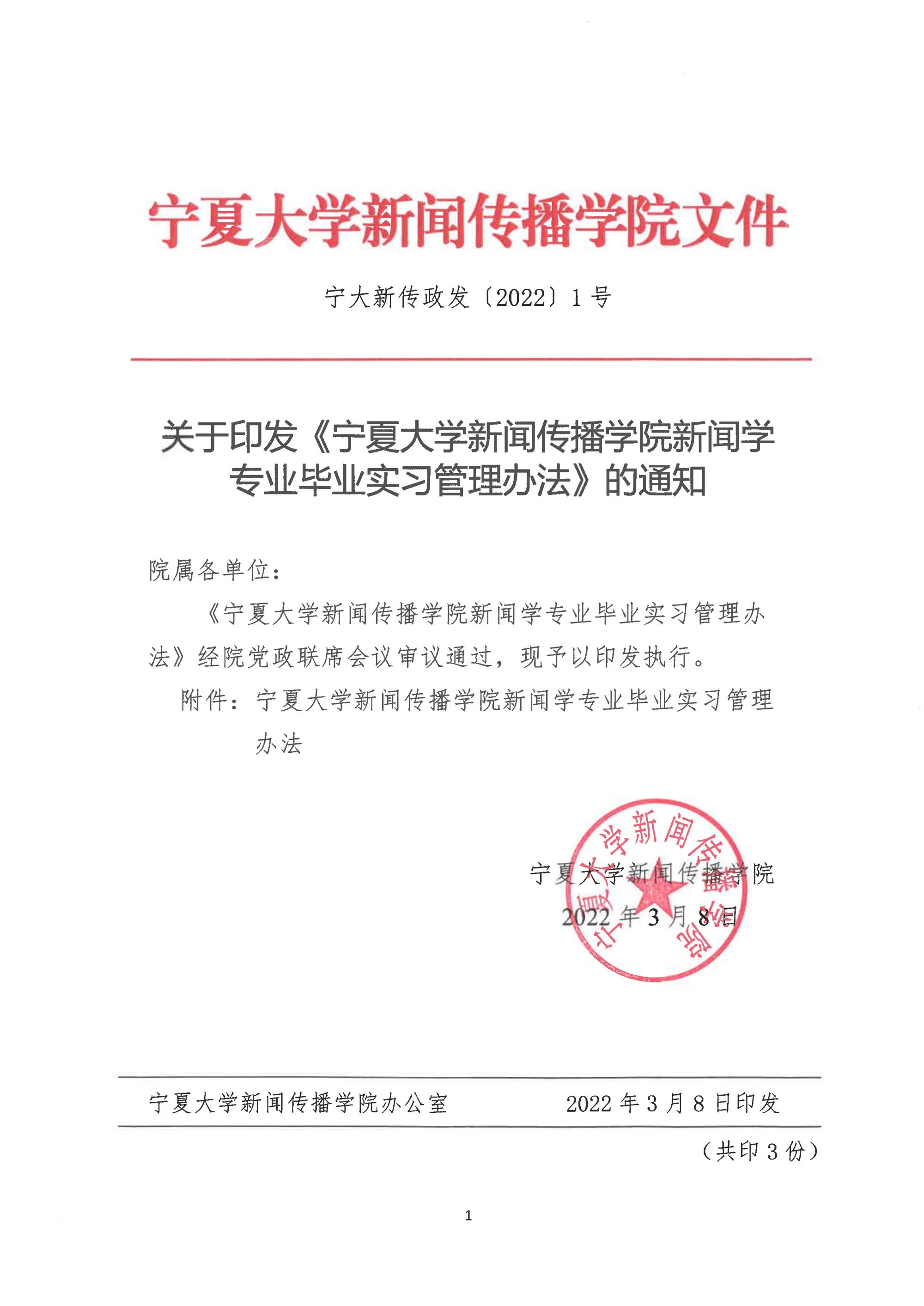 宁大新传政发〔2022〕1号 关于印发《银河国际 新闻学专业毕业实习管理办法》的通知