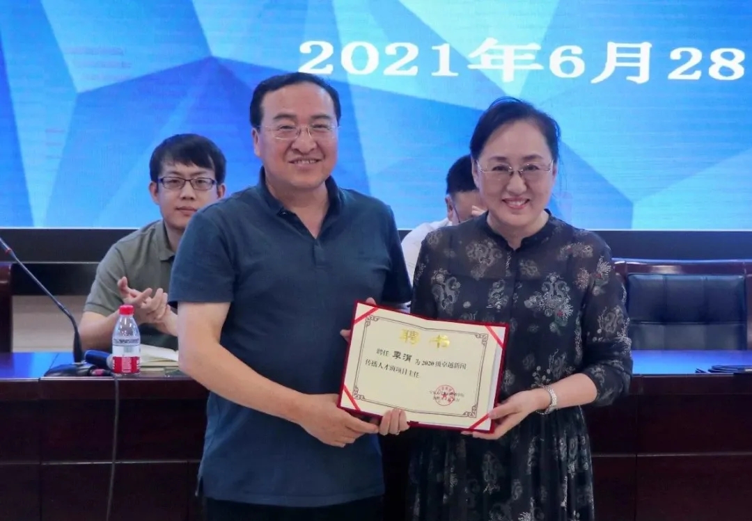 3个专业的特色和发展方向,对我院的人才模式创新与改革进行深度解读,又为2020年级学生做了专业指导,并阐述了项目主任负责制的意义。随后于鹏亮宣读聘任名单:聘任季涓为2020级卓越新闻人才班项目主任,张静涛、杨璠为2019级网络与新媒体班、2020级网络与新媒体班项目主任,由周强和李世举分别为三位教师发放聘书。
