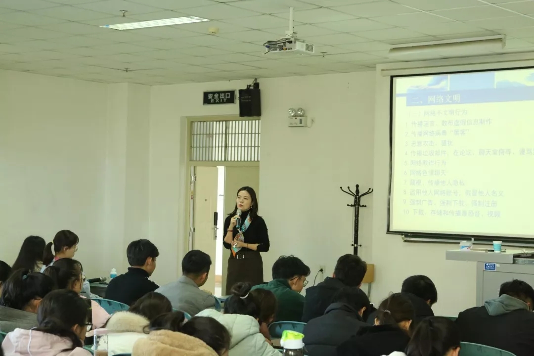 余洁从网络不文明行为、如何科学有效利用网络、怎样避免被骗等方面进行了宣讲。她指出,网络是一把双刃剑,在带来便捷的同时也给我们带来了新的问题和挑战,网络不是法外之地,同学们在网络发帖、转发、跟帖的过程中要遵守相关规定。余洁还结合校园贷及电信诈骗等多个生动形象的案例帮助同学们分析了各种诈骗方法,并分门别类地传授了防范措施。在场的同学认真聆听,仔细记录,受益匪浅。