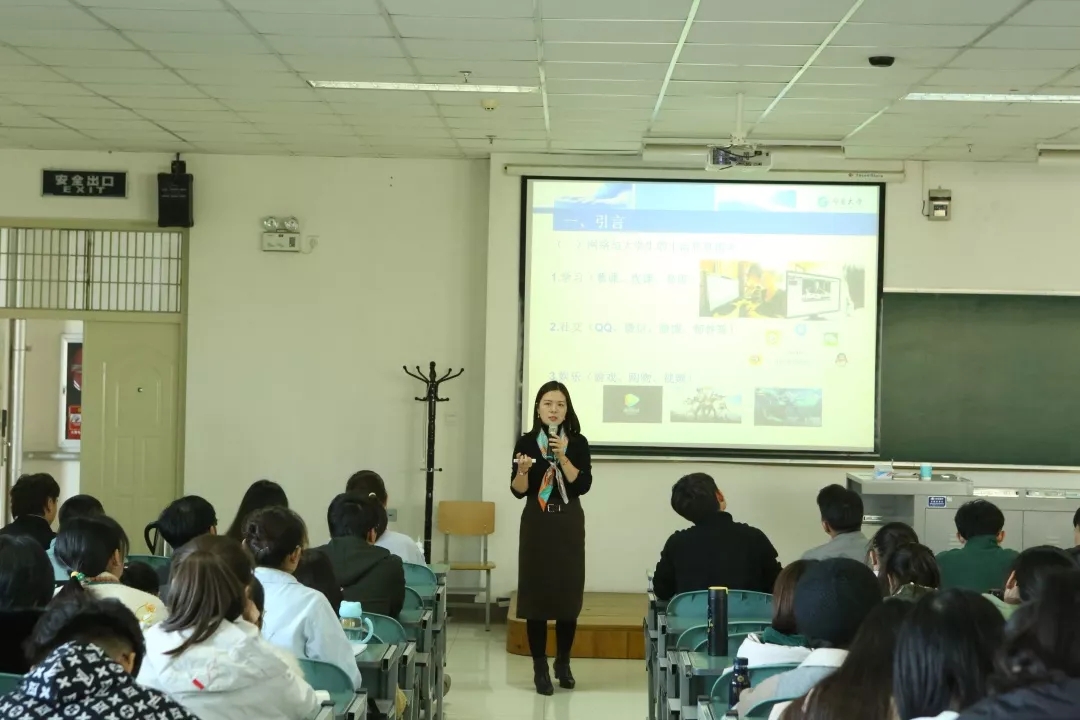 党委副书记余洁老师,于文荟楼230教室开展了“2019级新生网络文明守纪与安全教育”主题讲座。