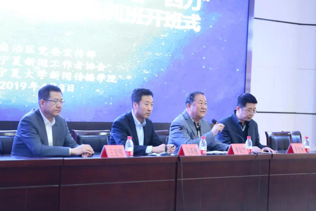 党委副书记王宏伟等相关部门领导出席开班式。宁夏新闻工作者协会主席李安宁主持会议。培训班特邀请中国人民大学教授郑保卫做马克思主义新闻观学习辅导报告。