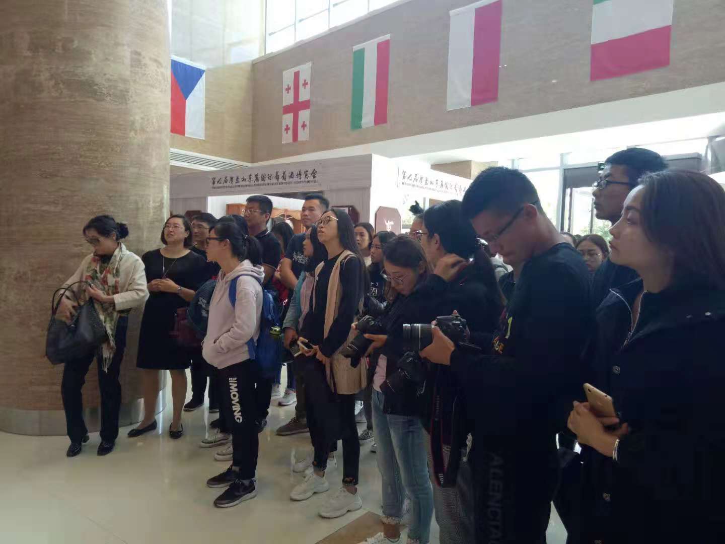 “关于葡萄酒的起源,西方学者认为最早发源于8000年前的格鲁吉亚,但中国科技大学、美国宾夕法尼亚大学专家在2001年考察河南贾湖遗址(距今约9000年前)时,在发掘出土的陶器上发现了疑似酒类沉淀物……”9月21日下午,贺兰山东麓国际葡萄酒博物馆一位讲解人员带领着我院2016级《新媒体实践》课程的师生参观展馆。