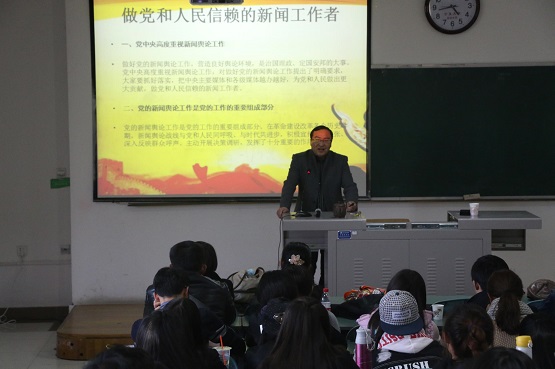 书记、常务副院长周强在文科楼130教室为全体党员师生开展了"学习贯彻十八届六中全会精神,做党和人民信赖的新闻工作者"主题报告。