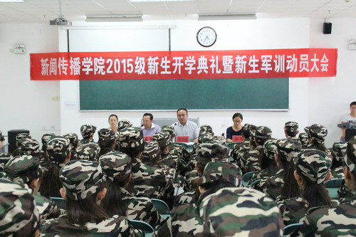 2015级新生开学典礼暨新生军训动员大会在文科楼324教室隆重召开,银河国际