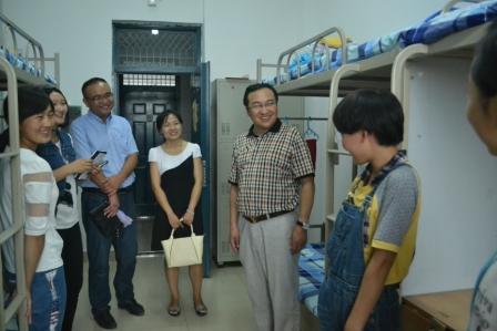领导深入学生公寓看望慰问2014级新同学。