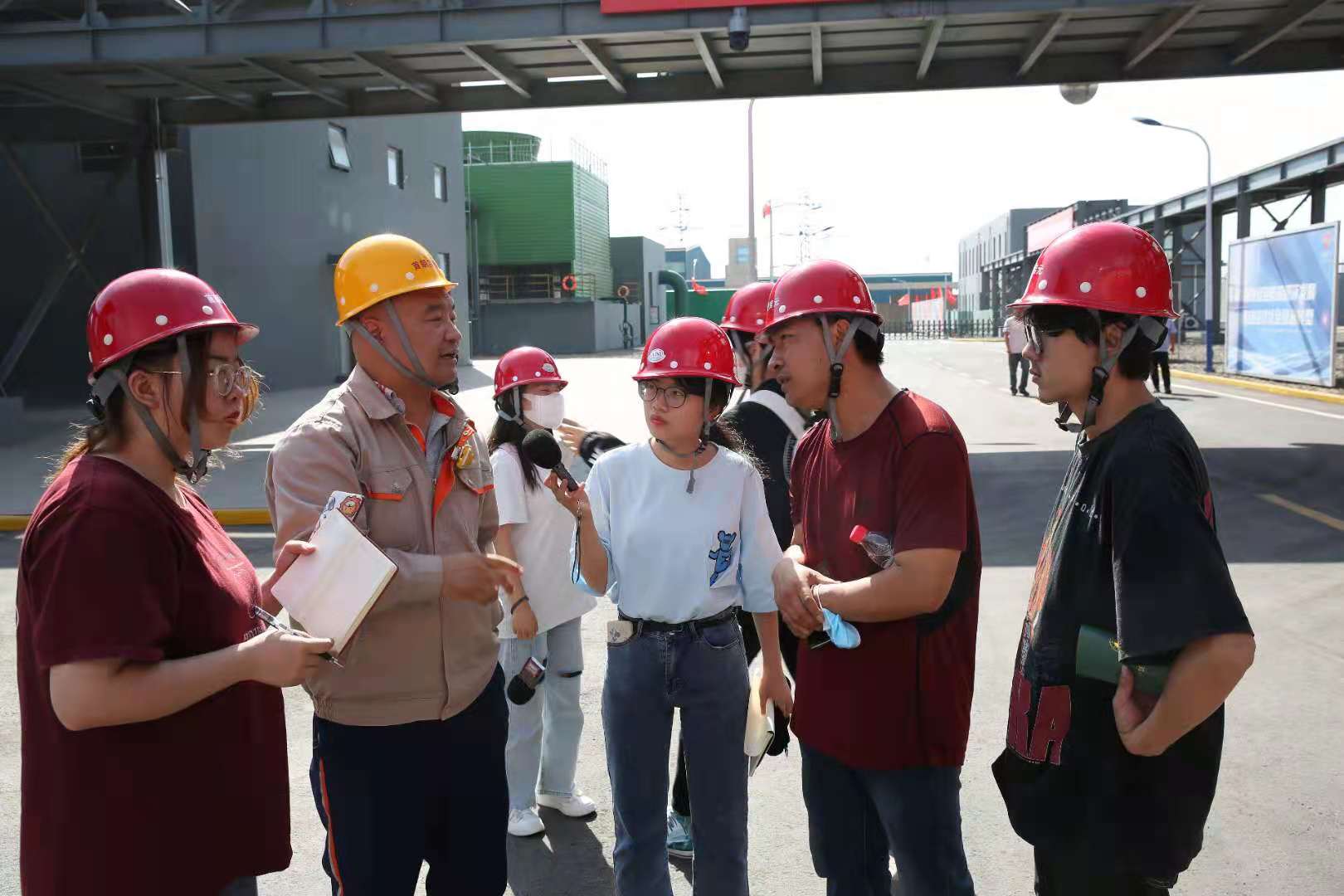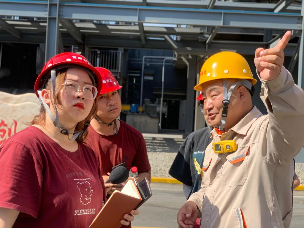 在夏楠的带领下,实训小组进入厂区实地考察,恢弘大气的工业建筑十分吸引记者们的目光,在工业生产链中,我们亲身感受了循环经济的产业潜力。首朗吉元项目的建设为助力西北地区实现“碳达峰、碳中和”起到示范引领作用,为宁夏回族自治区治理大气污染,打赢蓝天保卫战作出积极贡献。