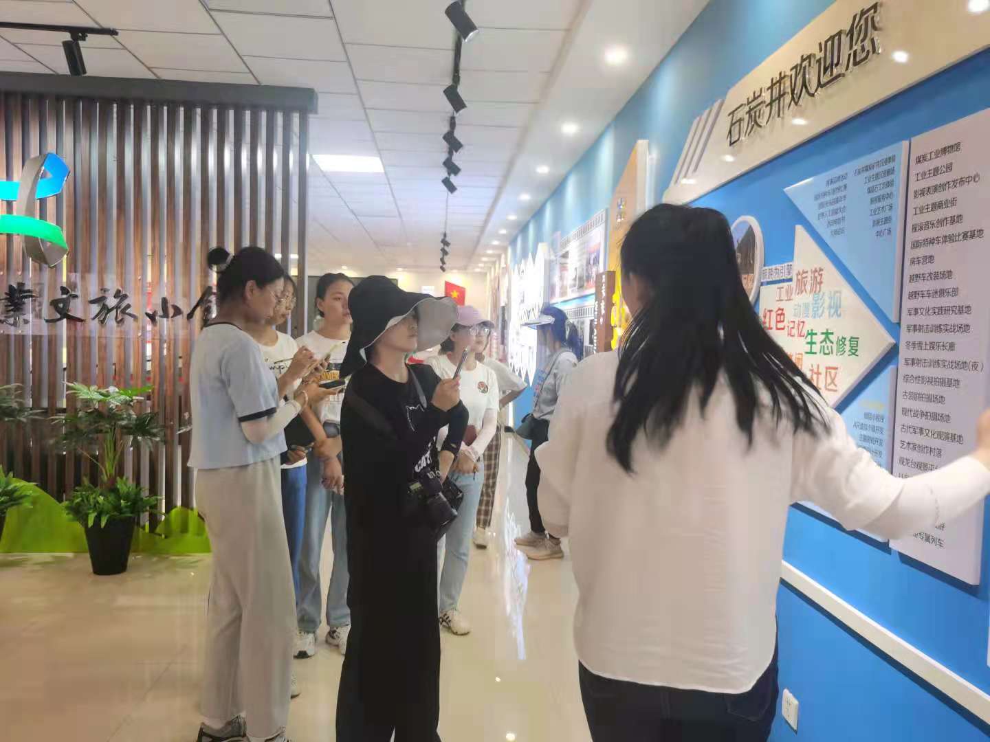吃过午饭后,十二点两组赶到了石炭井工业文旅小镇展示馆,解说员向我们讲述了石炭井的辉煌历史和发展文旅产业的光明未来。在参观展示馆期间,我们还遇到了一群为了怀旧而来的游客,他们有些已离开石炭井多年,对于石炭井现在的改变有着更为深刻的体会。