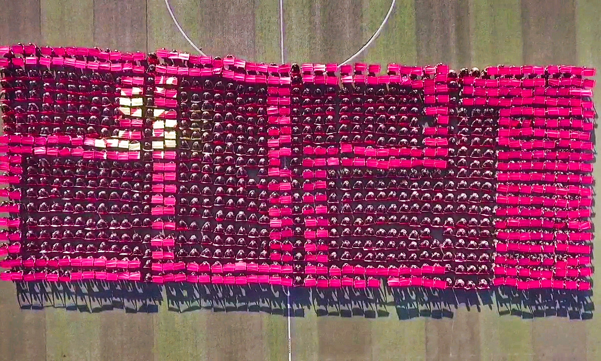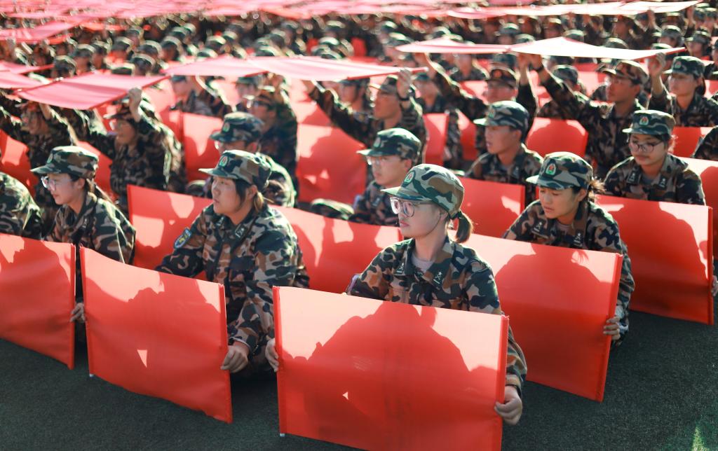 新生在操场进行千人军训