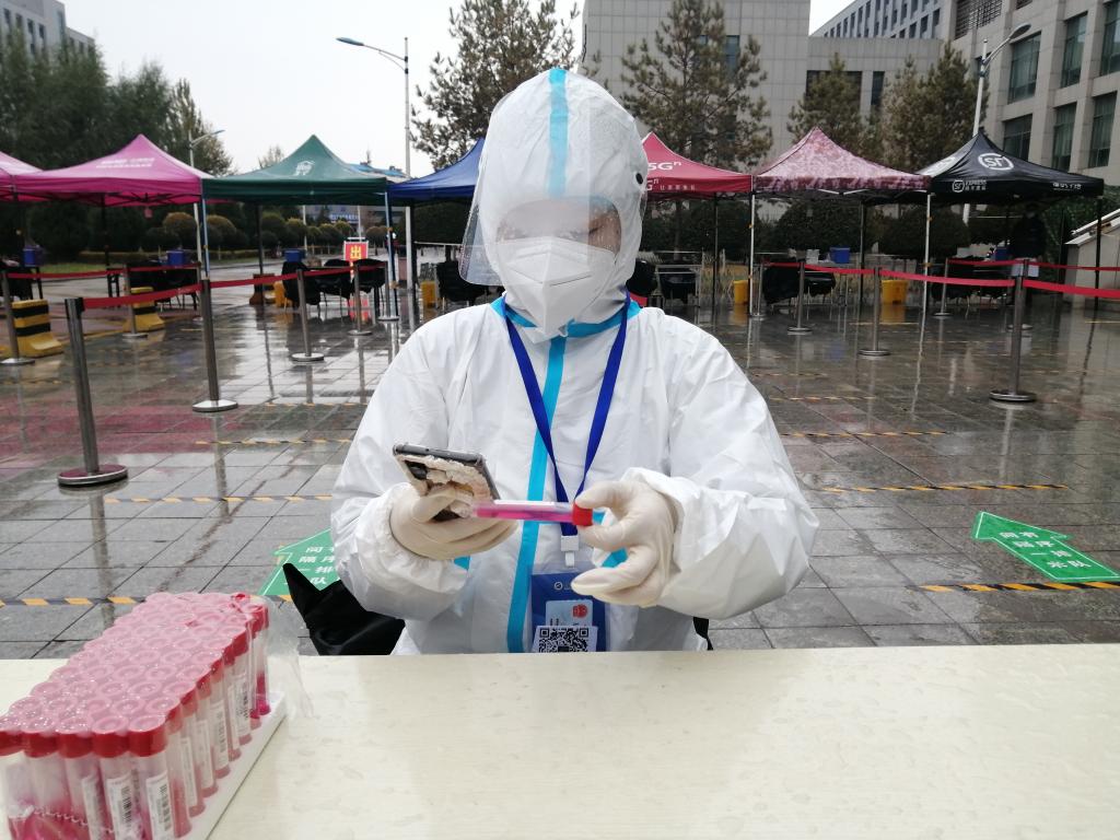 有条不紊地对防疫工作进行安排,一方面对校内人员进行精准地排查,一方面及时开展线上教学,同时进行防疫知识宣传和安抚师生情绪。我有幸加入了宁大青年突击队,成为了一名光荣的志愿者,在第二次核酸检测中担任封箱工作。我化身“大白”,即使经过培训,初步入工作还是略有紧张,一步一步都小心翼翼,生怕出错,二维码要校对准,试管数量要核实清、工作单要填写实……我抬头,看到的是区医院的医护人员在不畏疲倦地采集样本;低头,看到的是同岗位的志愿者鼓励的微笑。随着时间流逝,我的手法越发熟练,一剂又一剂试管从我手中有条不紊地被查验、录入、消毒、封箱。