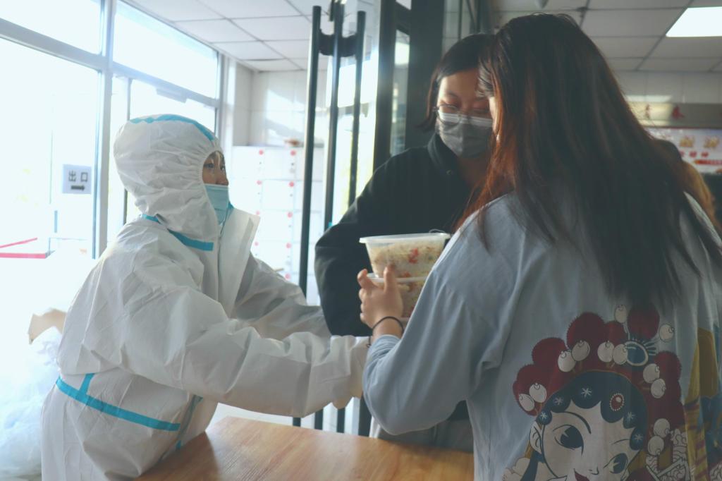 兰山公寓一号楼被封控后,楼外的同学们热情地帮助大家运送三餐,同时也提供购买生活必需品和物资、代取快递等服务,为大家的生活保驾护航,让大家安心地在宿舍生活学习。