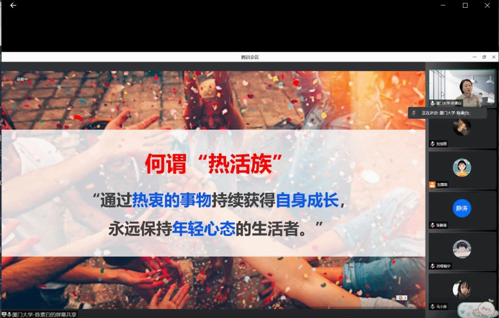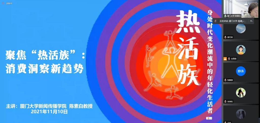 访问学者陈素白为学生进行以《“热活族”:身处时代变化潮流中的年轻化生活者洞察》为主题的线上学术讲座。本次讲座由我院副院长张静涛主持,银河国际