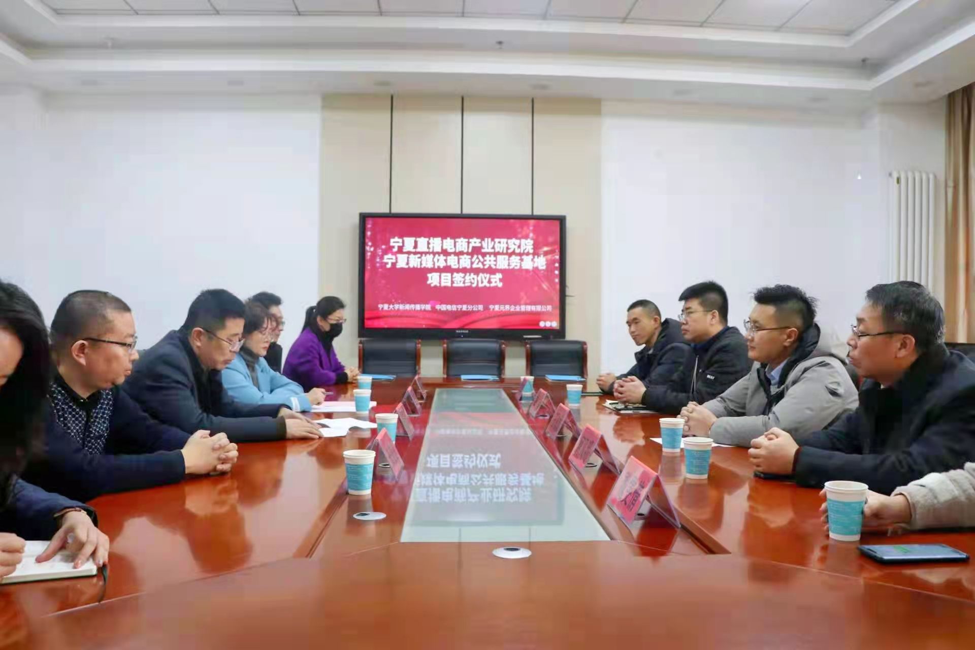 1月14日上午,宁夏直播电商产业研究院暨宁夏新媒体电商公共服务基地共建签约仪式在文荟楼四楼会议室举行。银河国际