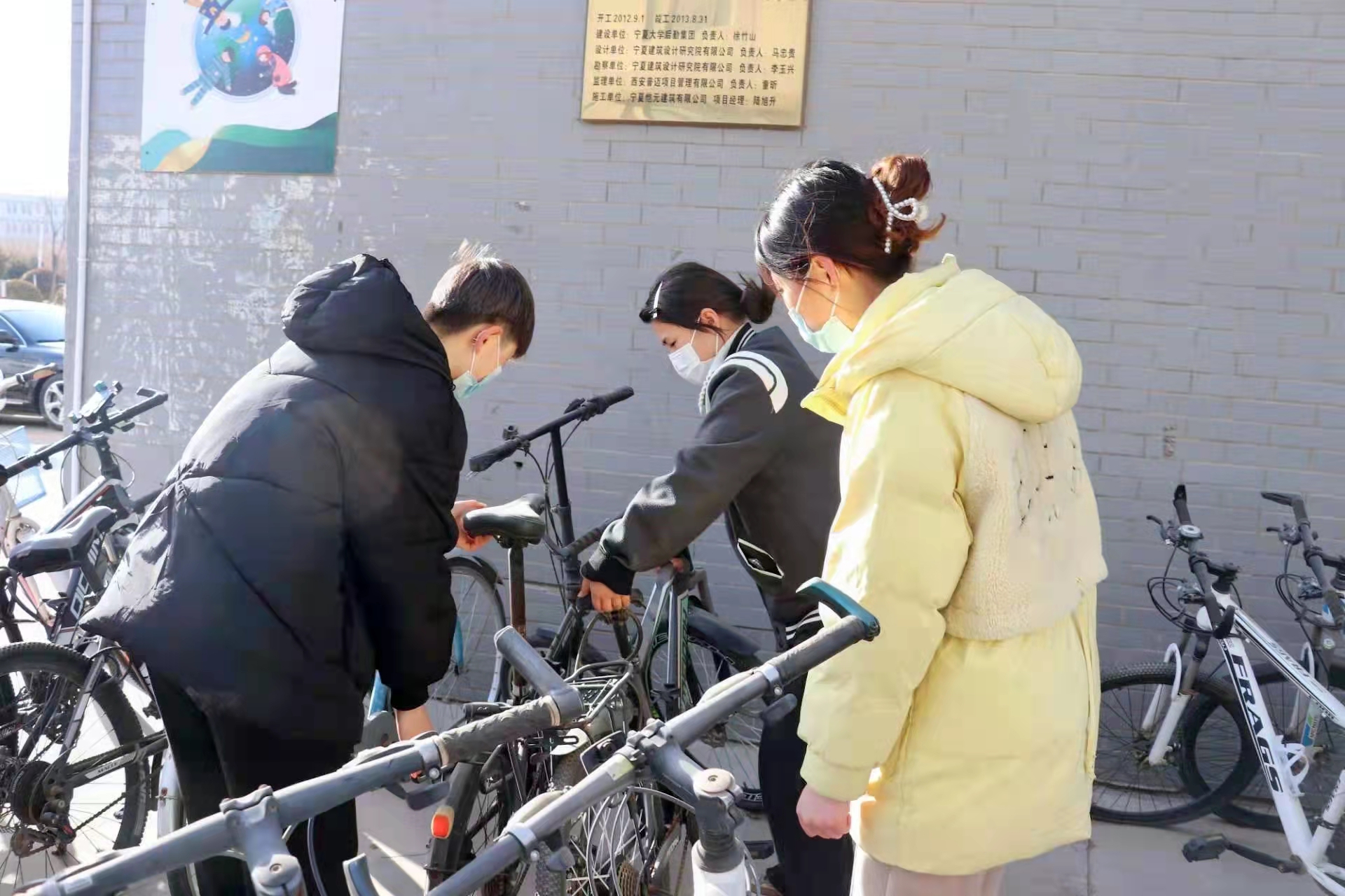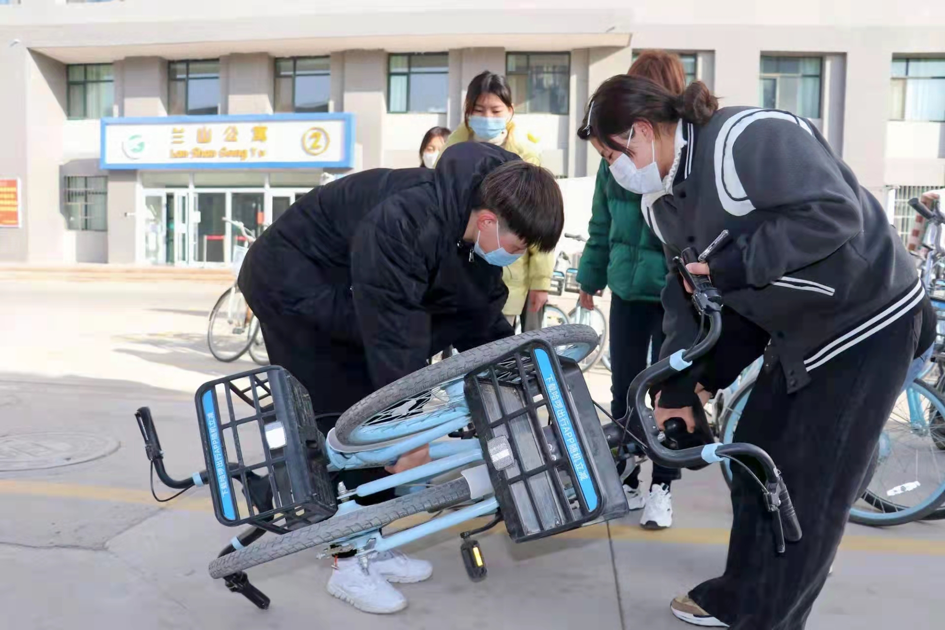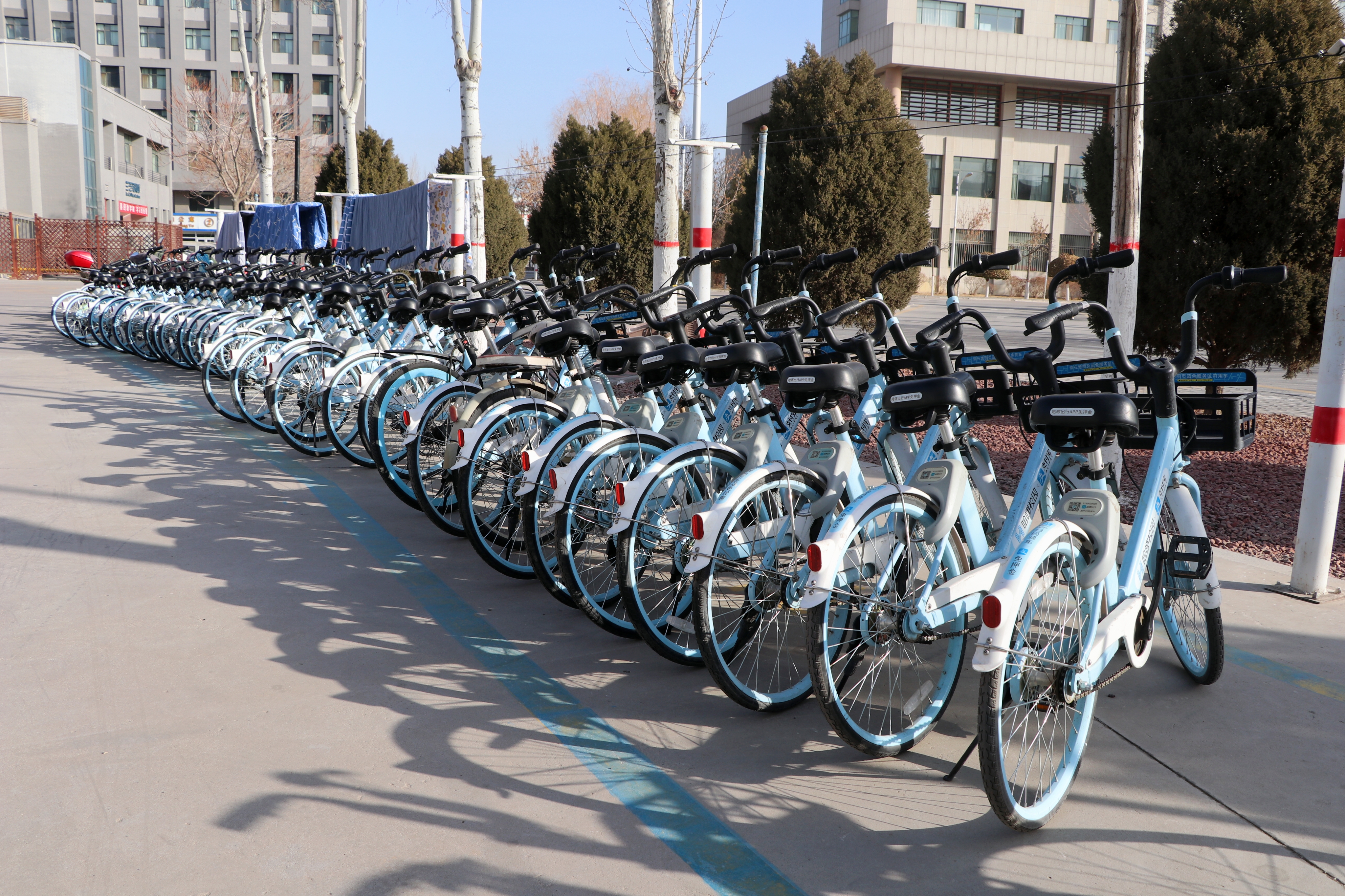 杂乱无章的自行车排排停放