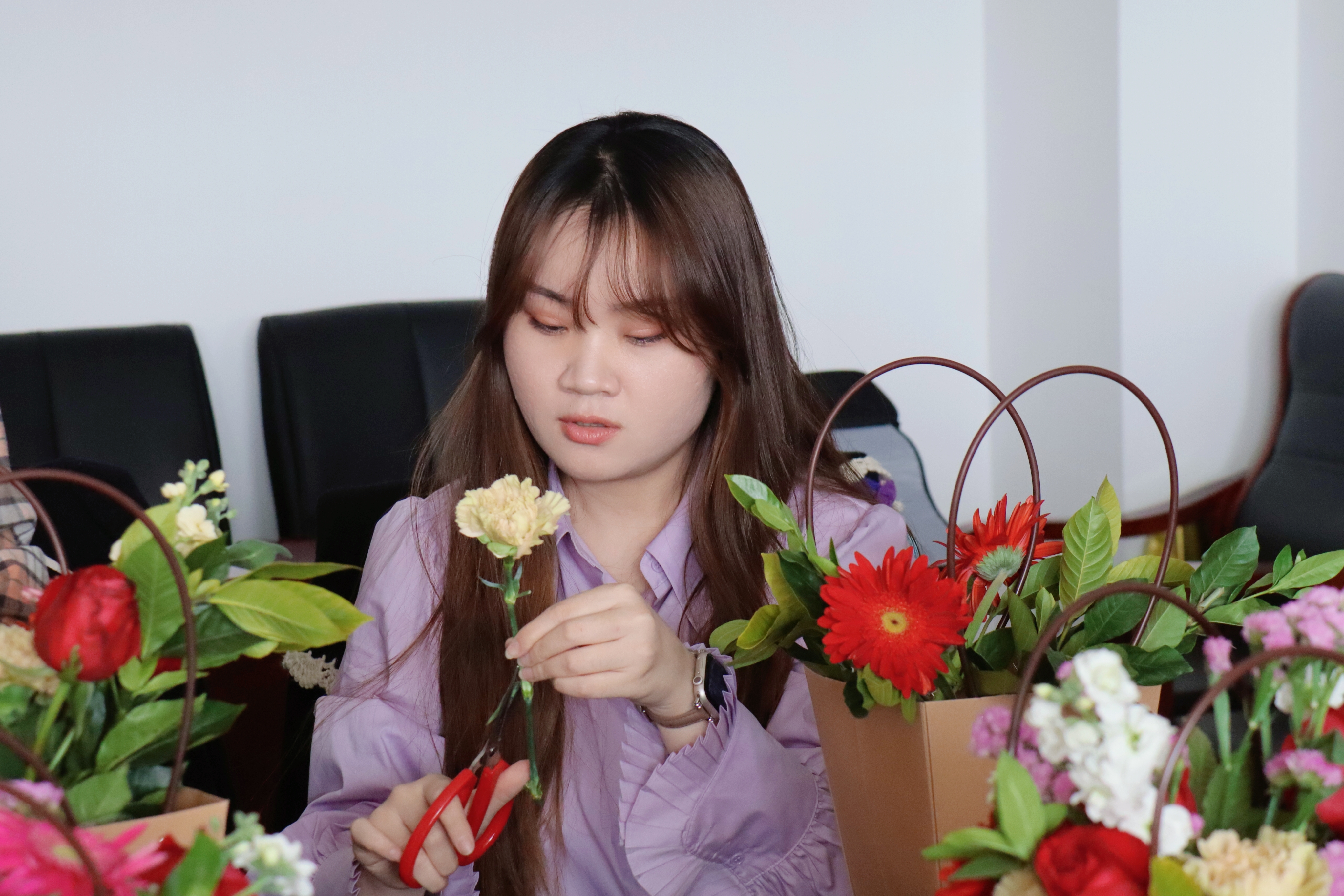 工会小组邀请的花艺师团队给全体教职工开展了花艺技能培训。花艺老师讲解了不同鲜花的花语、培育知识,让大家对鲜花乃至花艺有了一个较为全面的认识。初春三月,老师们暂时停下繁忙的工作,用丰富的花材完成自己的插花作品,感受春的美好,在欢声笑语中、在姹紫嫣红中,极大地放松了身心、减去压力、收获了幸福和快乐。春到新传花正妩,恰逢第112个国际劳动妇女节,这束束鲜花也蕴含着银河国际