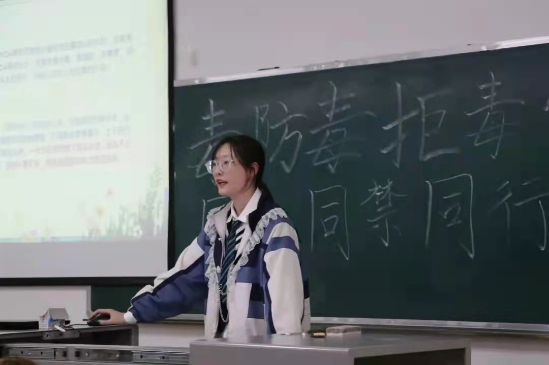 活动开始,各班团支书为同学们介绍了多种类型的毒品,通过播放有关禁毒系列的短片,帮助同学们更直观地认识到毒品危害。随后,团支书结合具体案例分别从家庭、社会、国家三个方面分析毒品所带来的影响,呼吁同学们认清毒品的危害,防患于未然。最后,21级一班团支书姜宁歆播放了有关如何预防毒品的措施类小视频,为同学们在识毒防毒拒毒的路上提供了必要的知识和方法,他谈到,希望同学们能够珍爱生命,拒绝毒品,依法禁毒,齐心协力共建无毒校园。