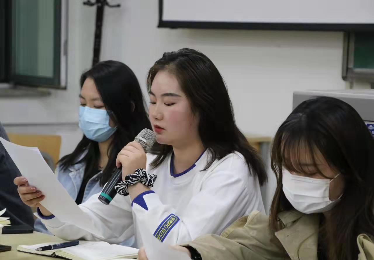会议伊始,杨媛媛介绍了会议的具体流程并宣读了本学期学生会执行主席轮值议程,由何小倩担任学生会执行主席,随后何小倩领学全国两会精神,她总结道:“希望同学们在今后学习生活中把贯彻两会精神作为一个常态化的学习。大家作为新闻人,同时还是团委、学生会组织中的一份子,就更要认真学习领会,带动身边同学一起学习。”