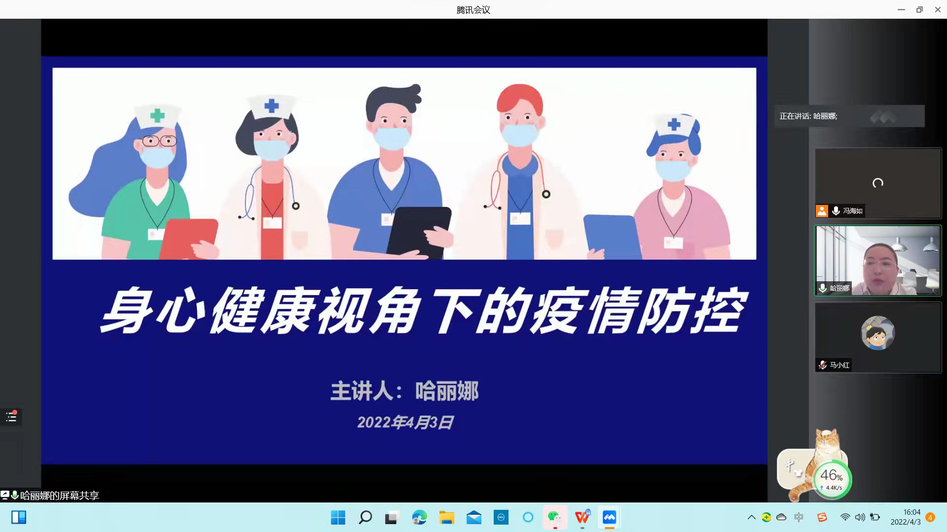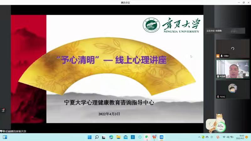 共同参加“予心清明——身心健康下的疫情防控”线上会议。会议邀请宁夏医科大学教师哈利娜为同学们讲授疫情防控下的身心健康。