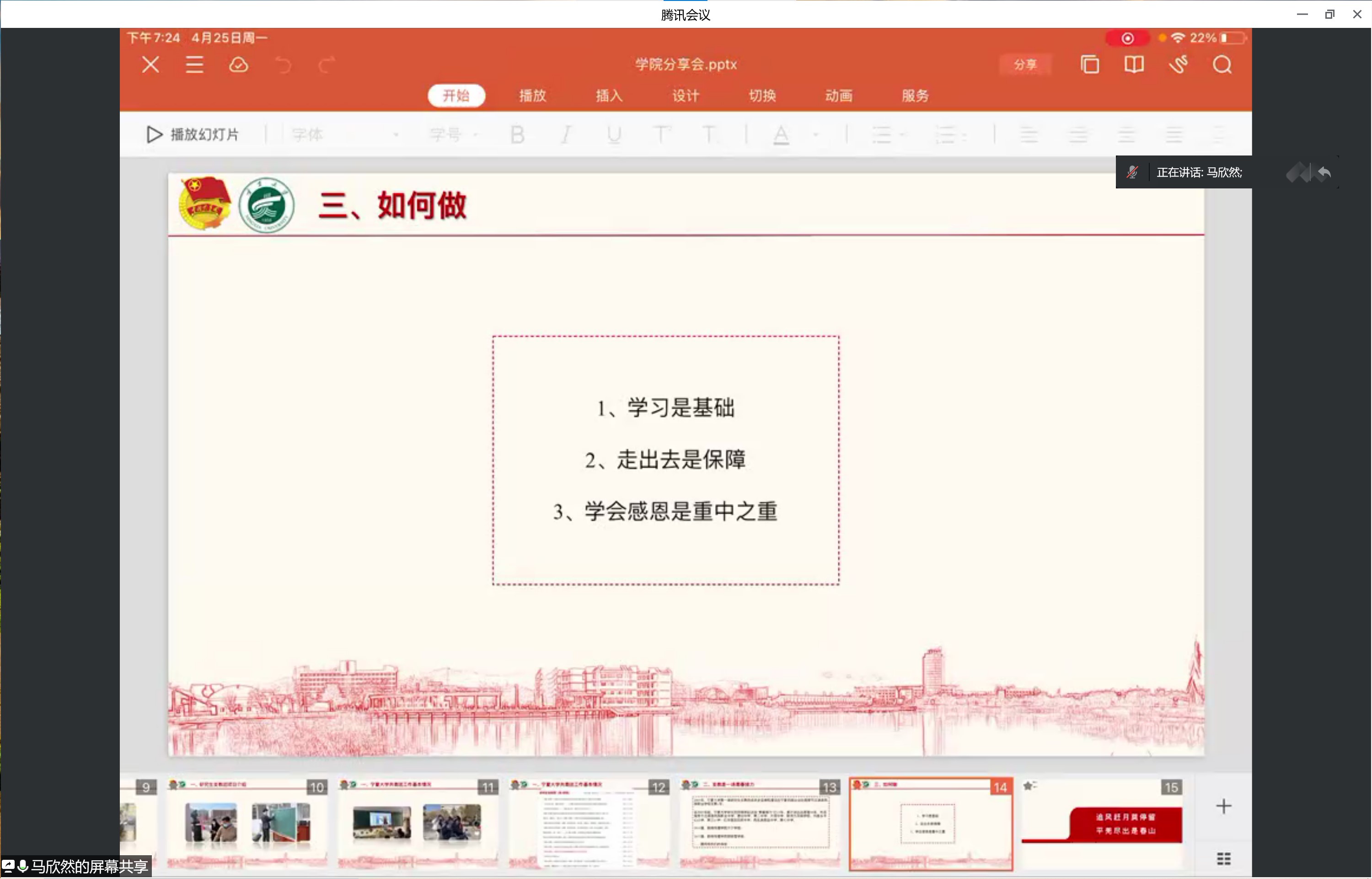为落实立德树人根本任务,聚焦学生成长成才办实事,以升学深造为牵引,切实推动学生高质量学业发展,我院于4月25日晚以线上形式举行考研保研经验交流分享会。本次交流会共邀请8位优秀的学长学姐分享他们保研、考研方面的经验和建议,2019、2020、2021级全体学生参会。
