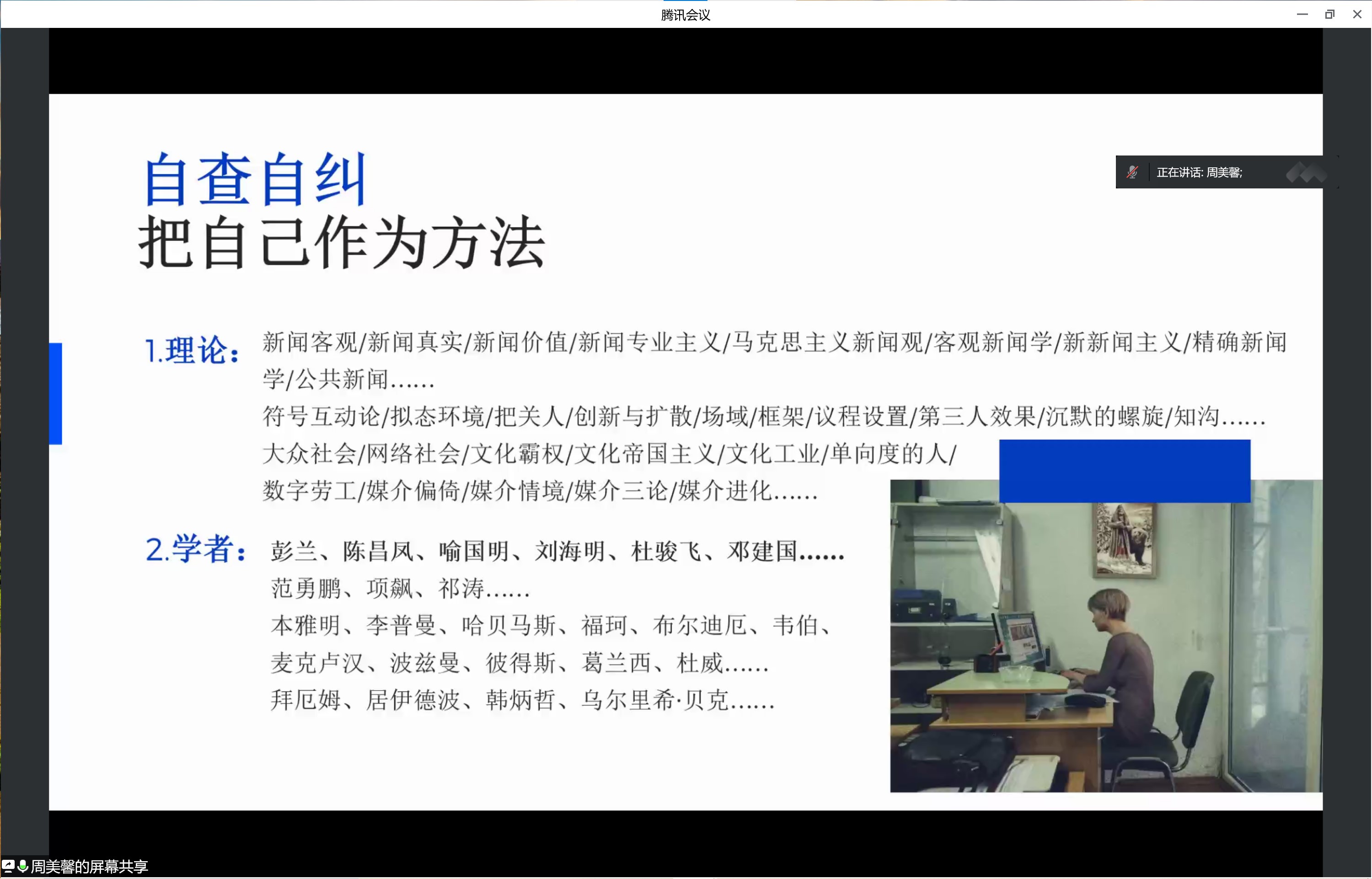 最后进行分享的周美馨认为考研是一场“破与立的拉锯”,在介绍自己调剂情况的同时分享了自己的心态变化。她鼓励打破考研的刻板印象与偏见,细致入微地洞察社会的变动与行业的坚守,并对跨考、专硕学硕的选择、院校选择、备考方式等问题给出了自己的意见。