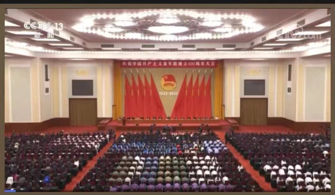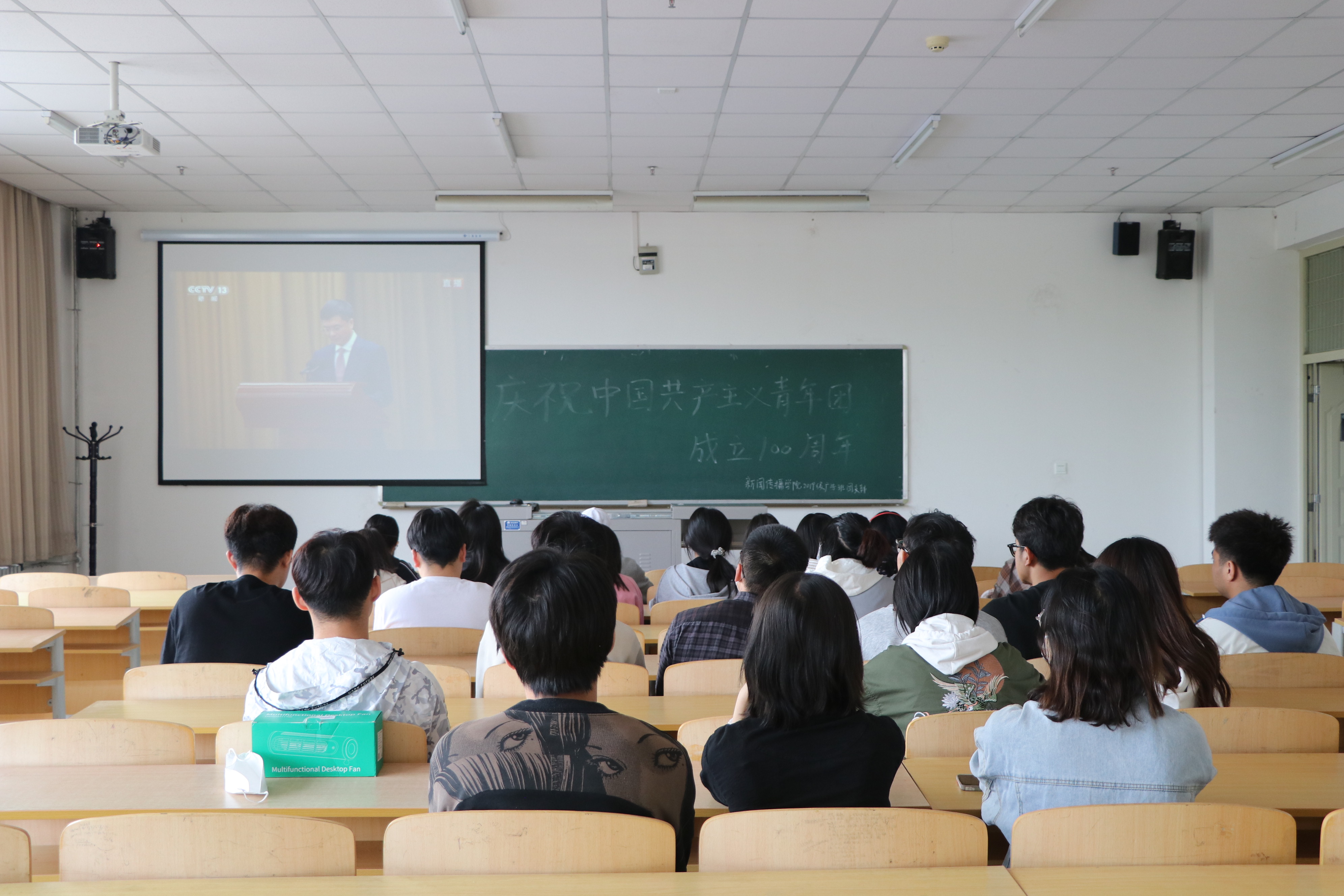 5月10日上午,庆祝中国共产主义青年团成立100周年大会在北京人民大会堂隆重举行,习近平总书记出席大会并发表了重要讲话。为庆祝建团百年,鼓舞和激励青年学生在新时期踔厉奋发、笃行不怠,号召全体学生奋进新时代,我院组织全体同学共同观看庆祝中国共产主义青年团成立100周年大会直播。