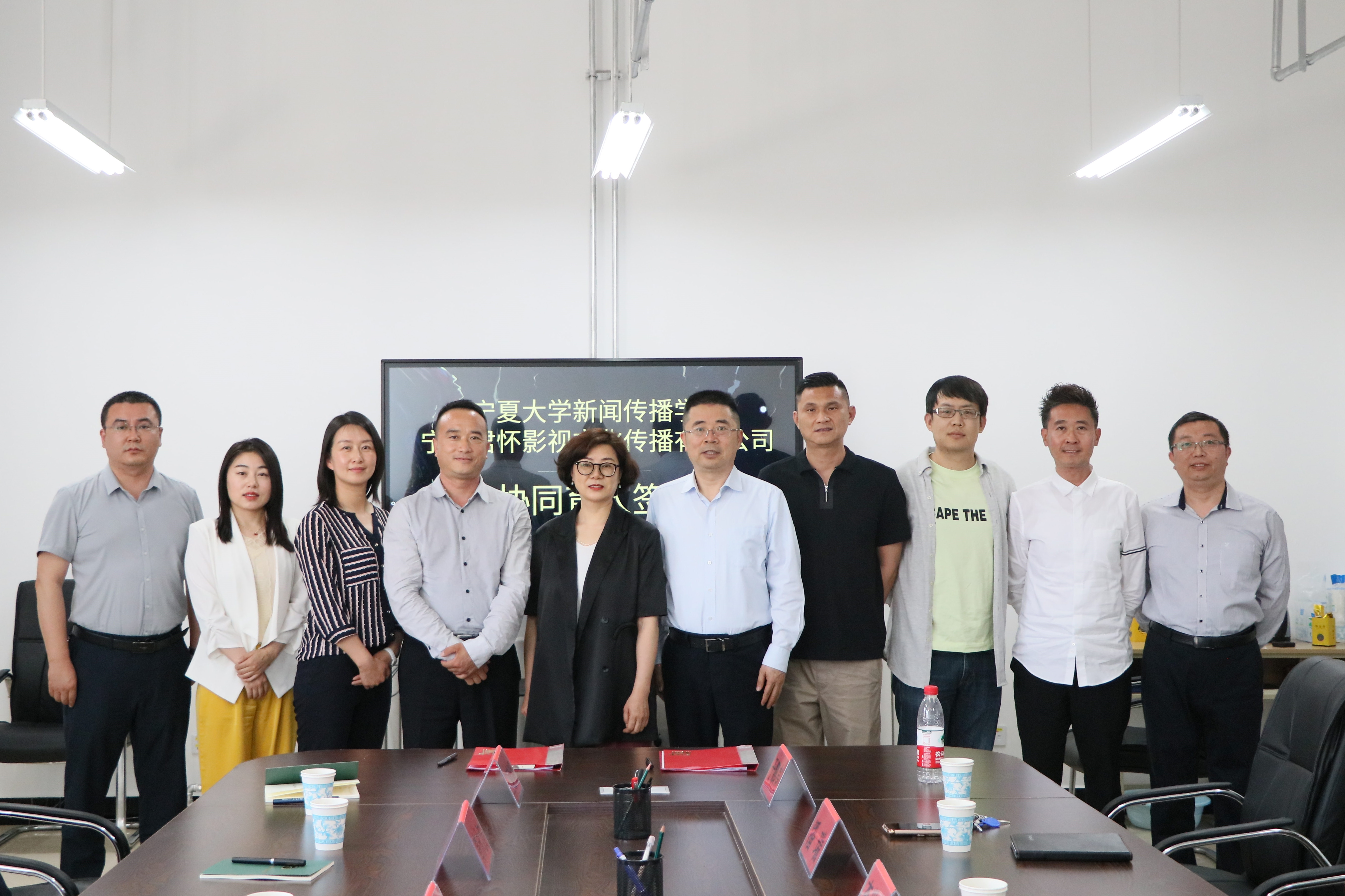 与宁夏君怀影视文化传播有限公司校企协同育人签约仪式在新闻大楼318会议室举行。宁夏君怀影视文化传播有限公司法定代表人高永波、宁夏君怀影视文化传播有限公司法律顾问樊蓉、银河国际