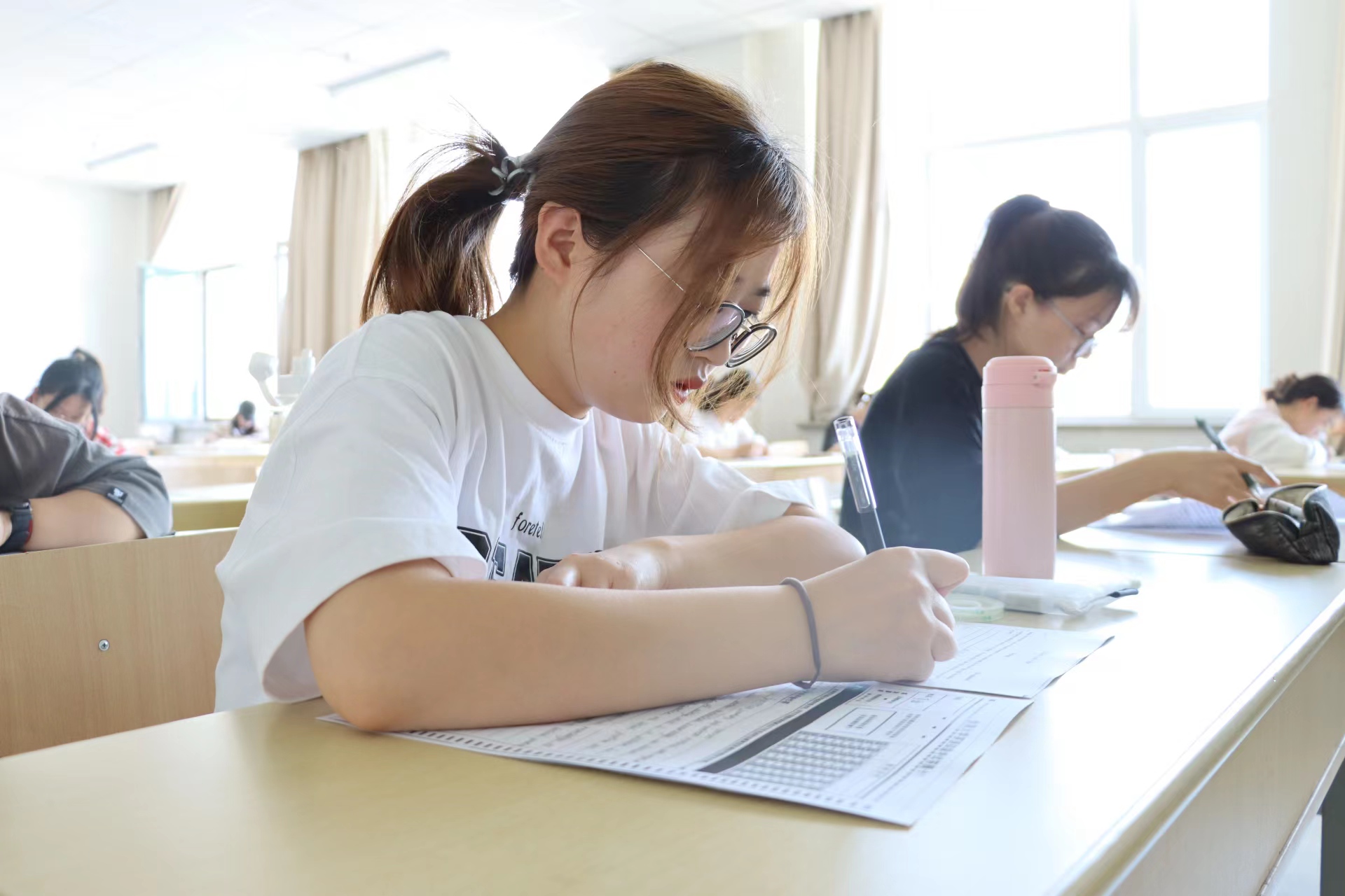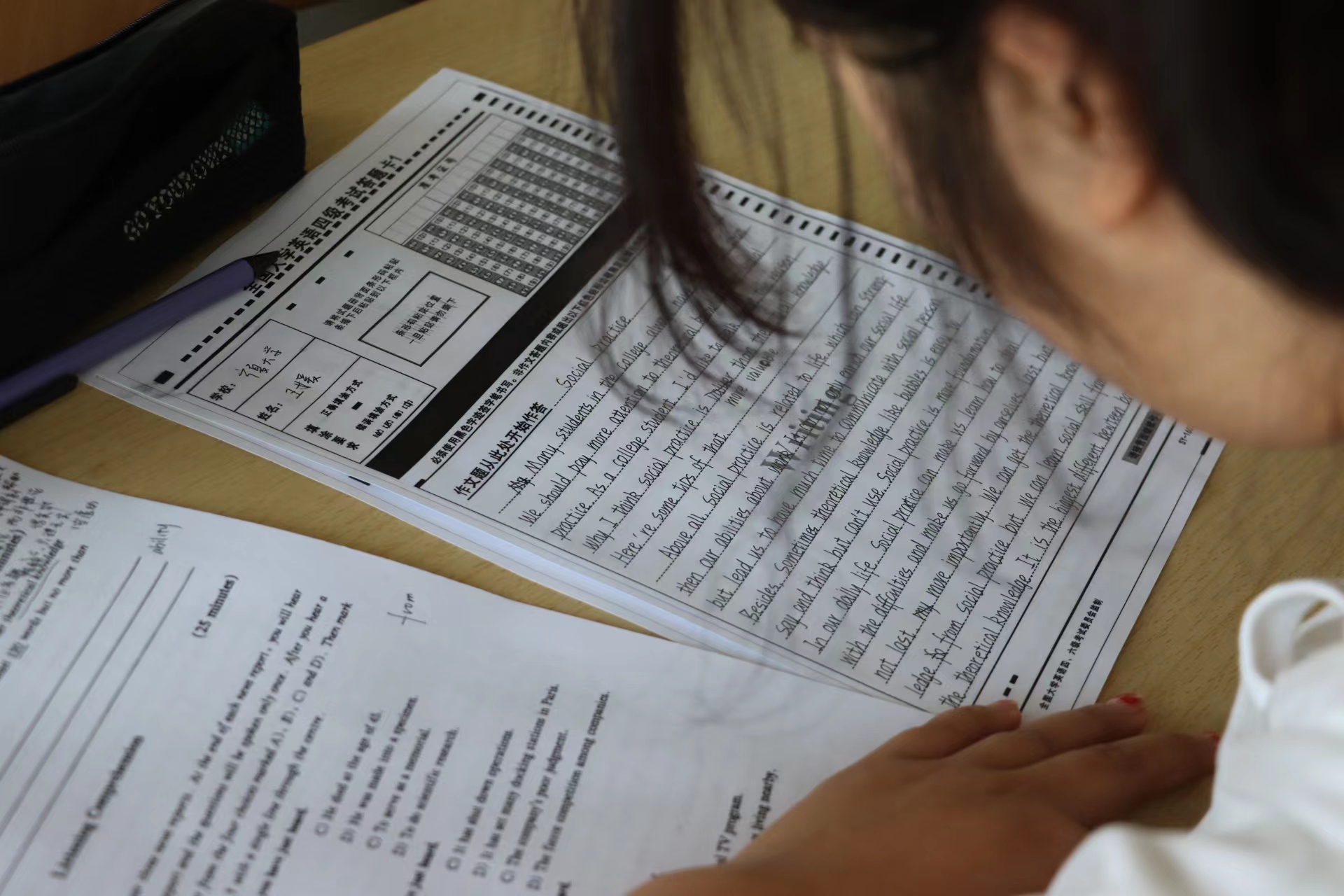 模拟考试前,我院学风建设部工作人员提前将试题印刷装订完毕,并安排好场地。据悉,本次模考严格遵照全国大学生英语四六级考试大纲标准,完全模拟正式考试的规范流程,在考验考生的词汇量、句型以及阅读理解等对英语基础知识掌握情况的同时,对考生把握考试时间、心态调节等应试能力也进行了培训和考验。考试结束后,监考人为考生分发答案,考生们及时校对,核算分数。
