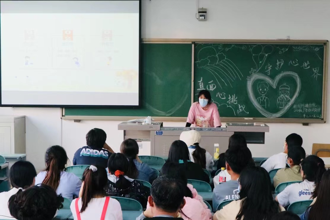 心理健康教育工作,构建平安、友善、和谐、稳定的心理健康氛围,我院于5月25日晚开展以“直面心挑战•守护心世界”为主题的团日活动,2020级、2021级全体学生参加。