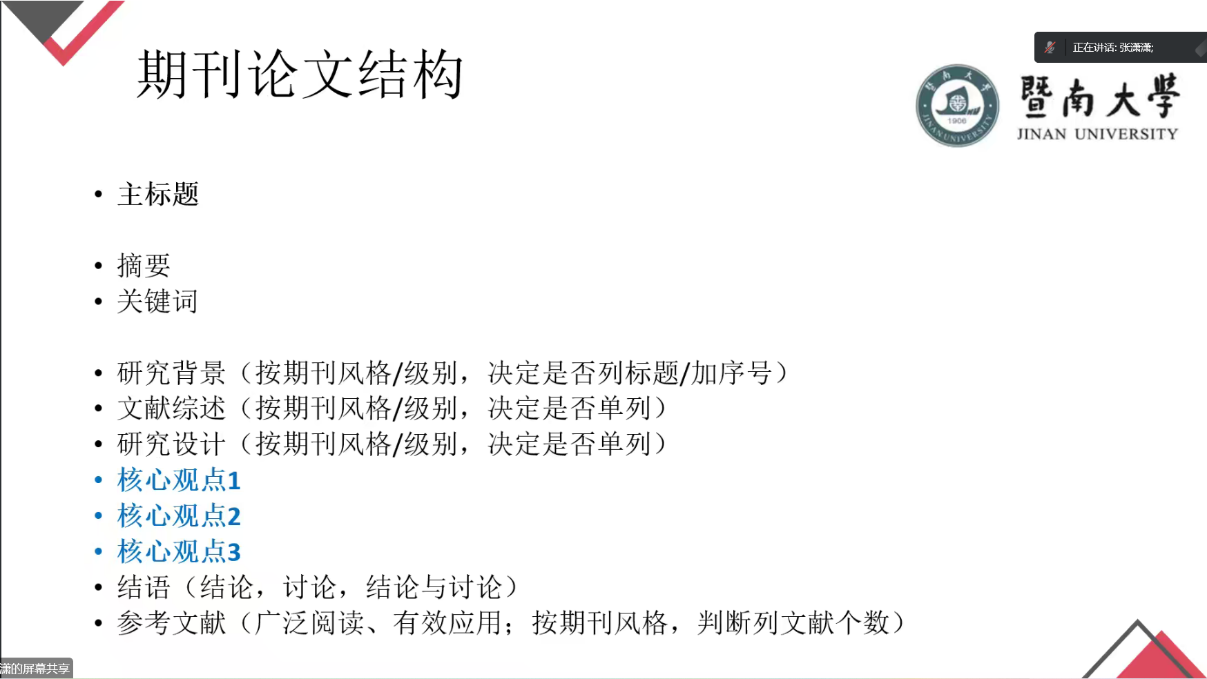 张潇潇结合多年科研及指导研究生经验,分享了研究生论文写作与投稿、如何做研究、如何顺利通过论文盲审的个人心得体会。