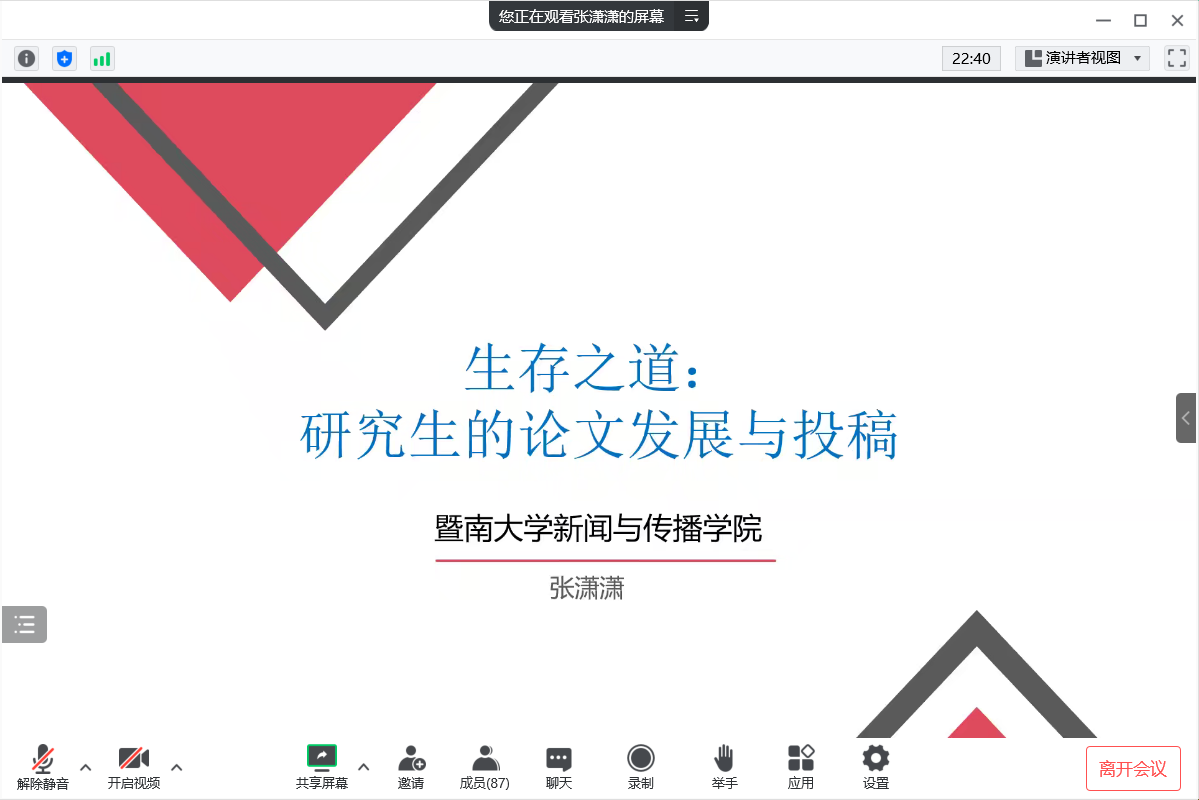 张潇潇教授开展《生存之道,研究生论文发展与投稿》线上前沿讲座,银河国际